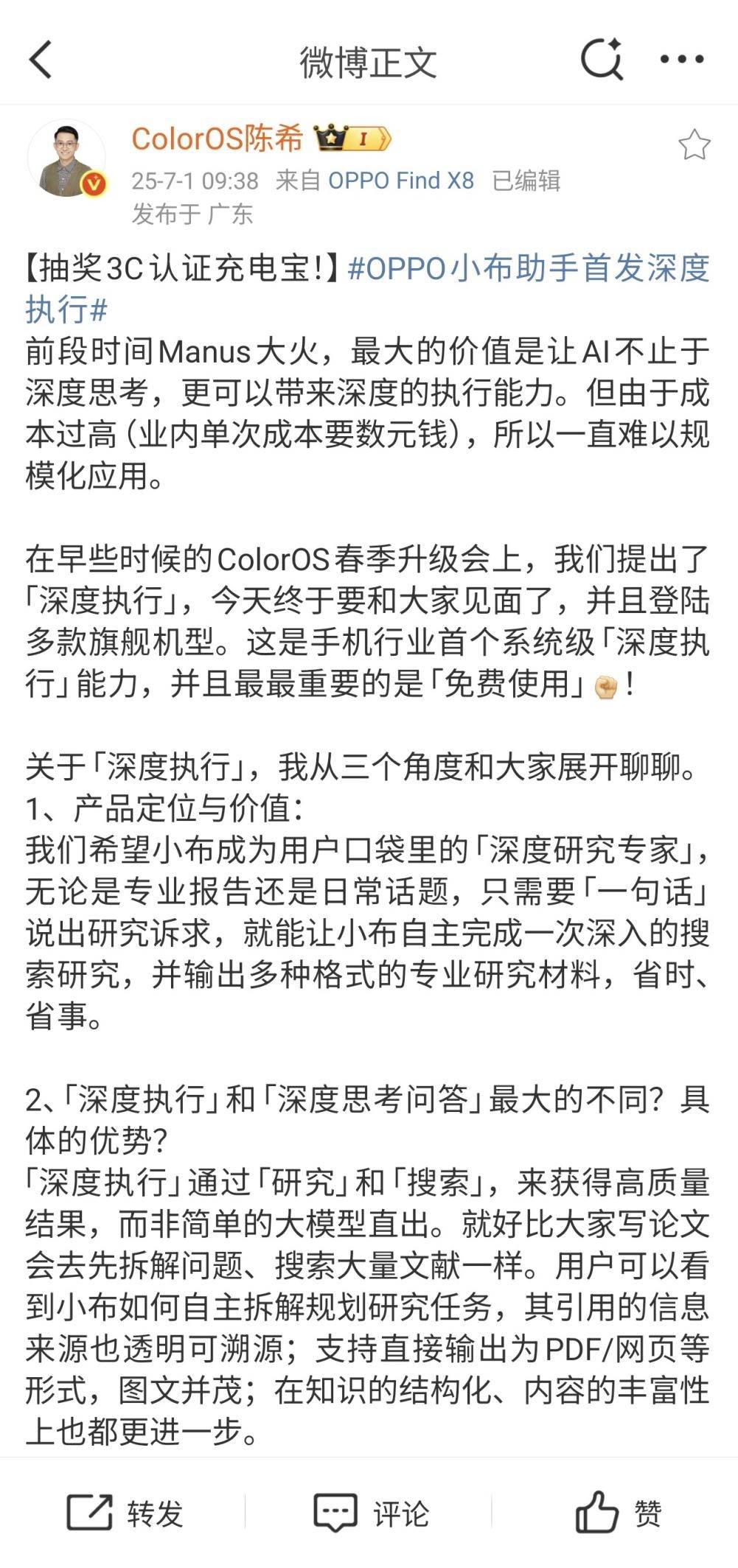 — AI自动完成深入研究!OPPO小布助手首发“深度执行”功能 —