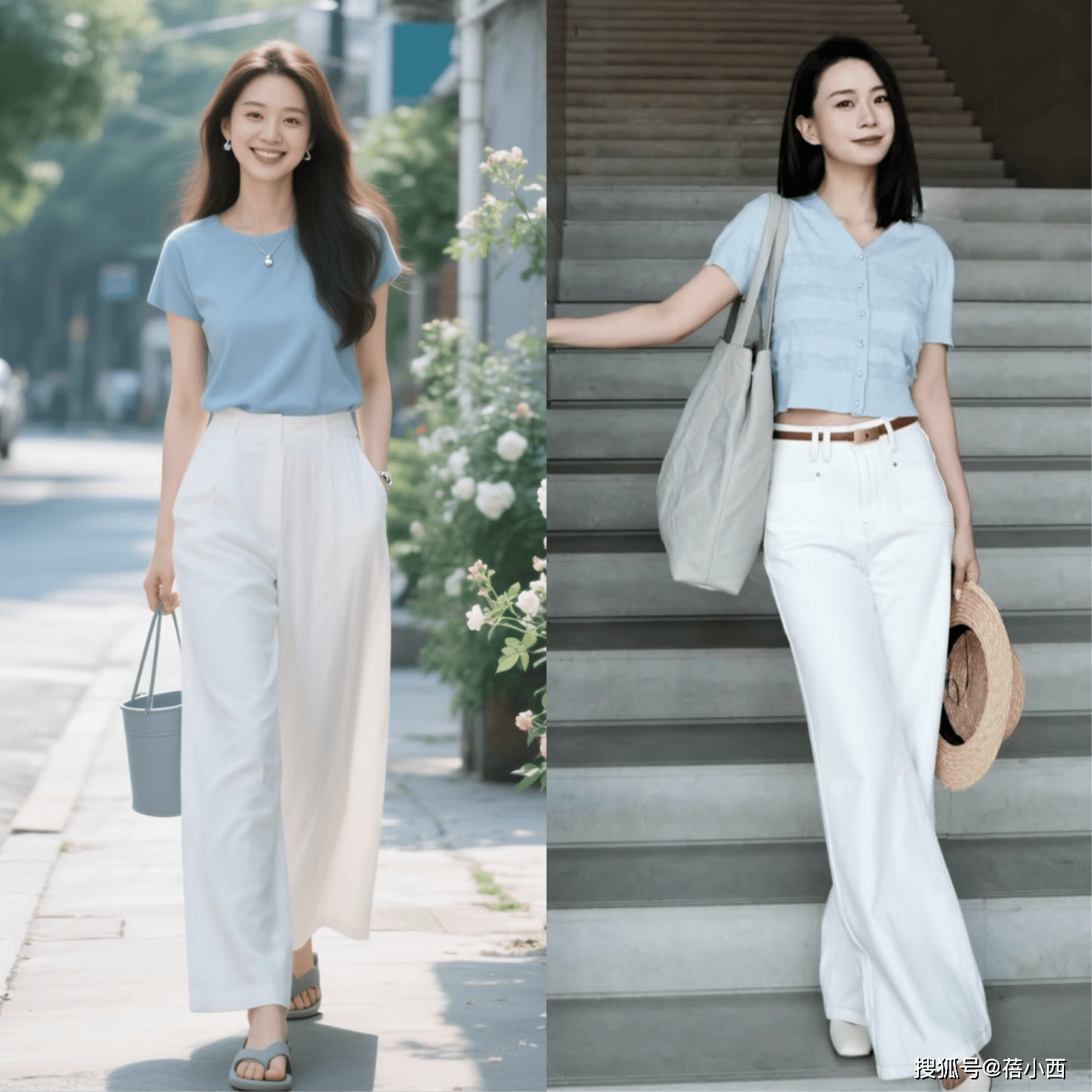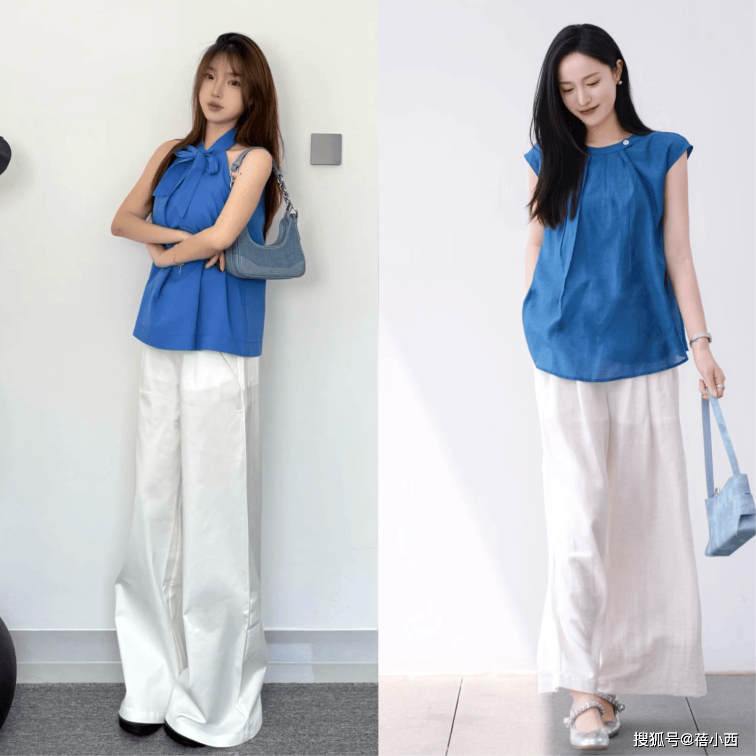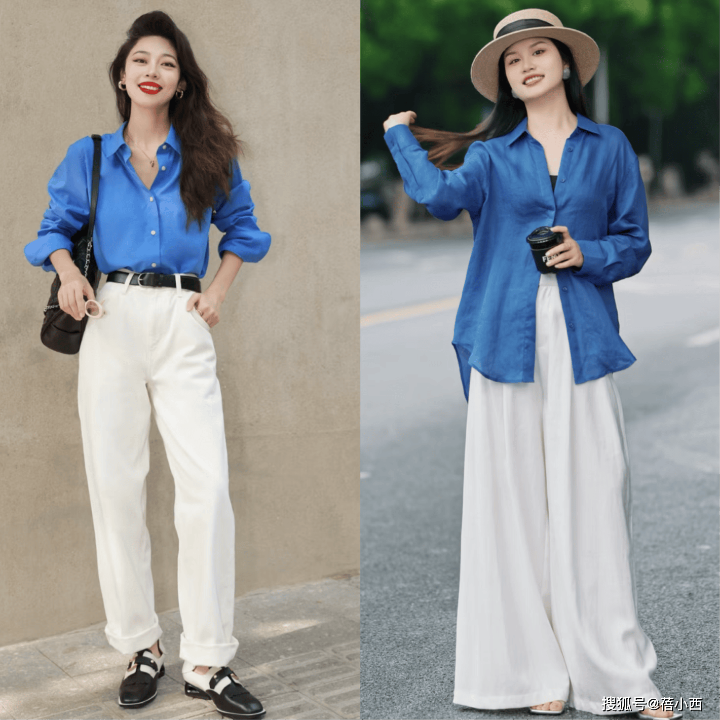 — 今夏“蓝色上衣+白裤子”又火了,40+中年女人这样穿,时髦又减龄 —