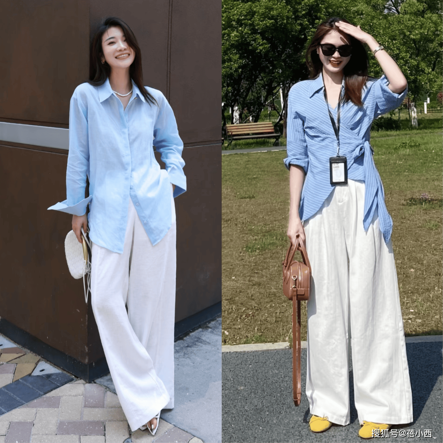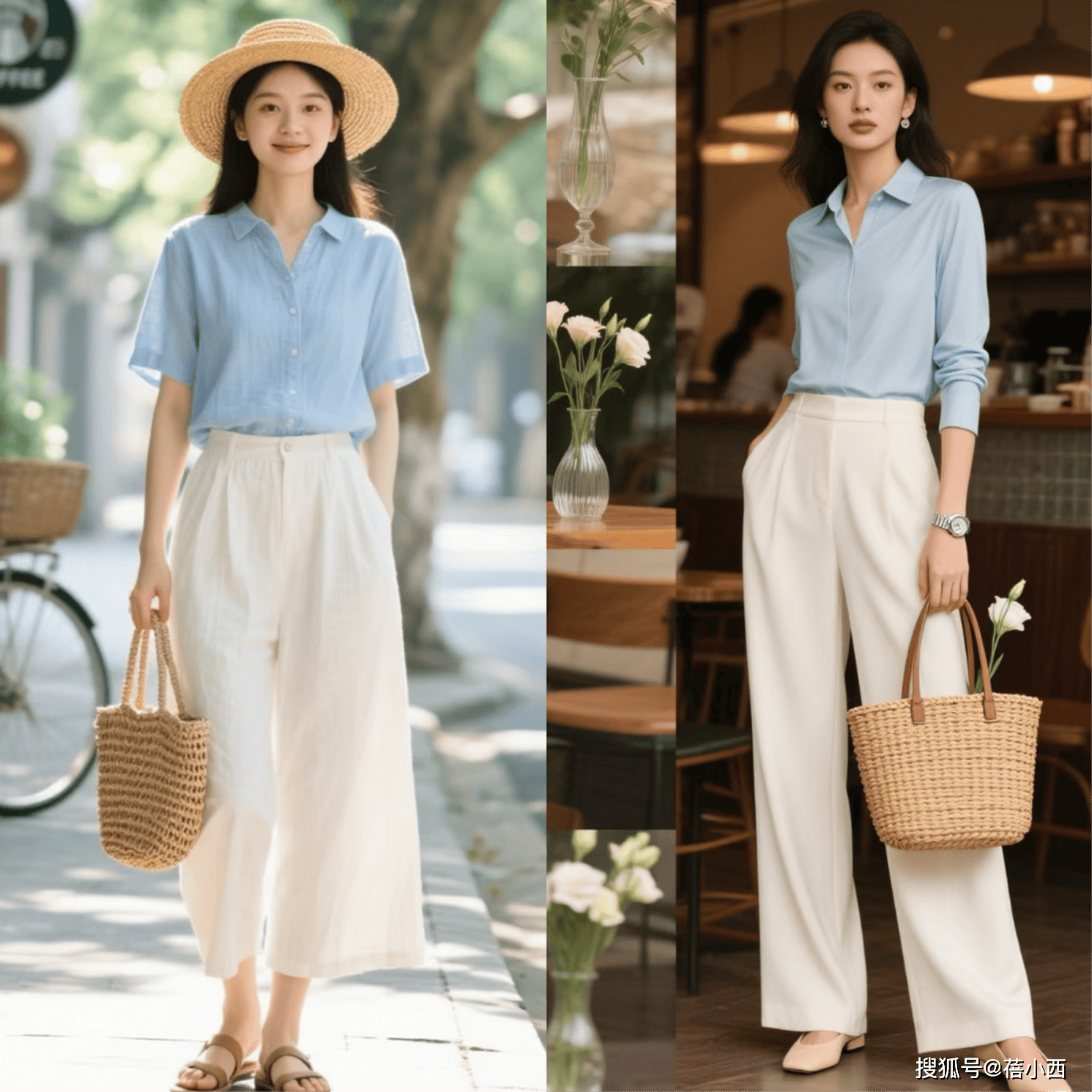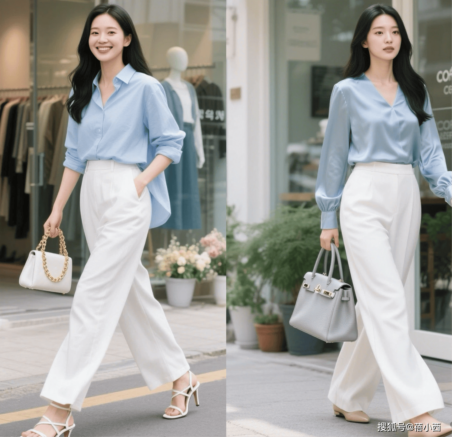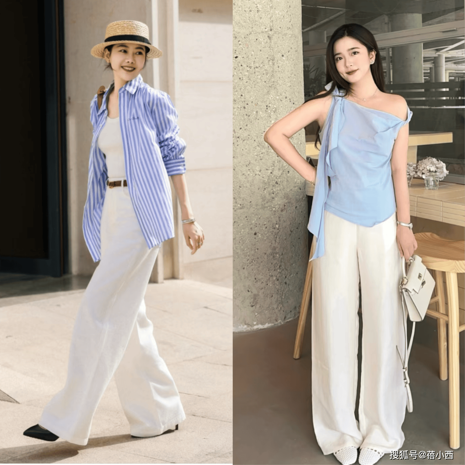 — 今夏“蓝色上衣+白裤子”又火了,40+中年女人这样穿,时髦又减龄 —