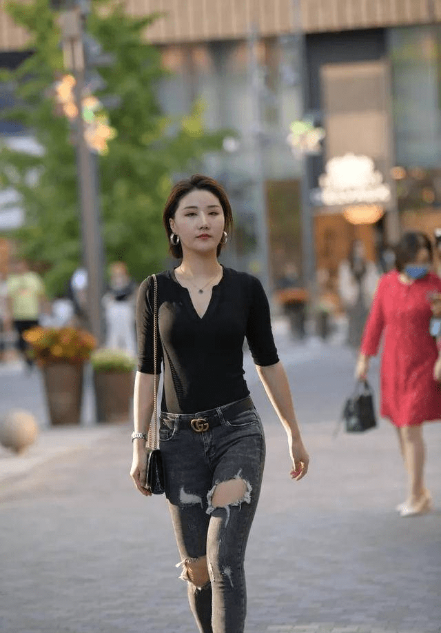 — 白色运动T恤和黑色工装小脚裤,是时尚圈中的经典的组合之一! —