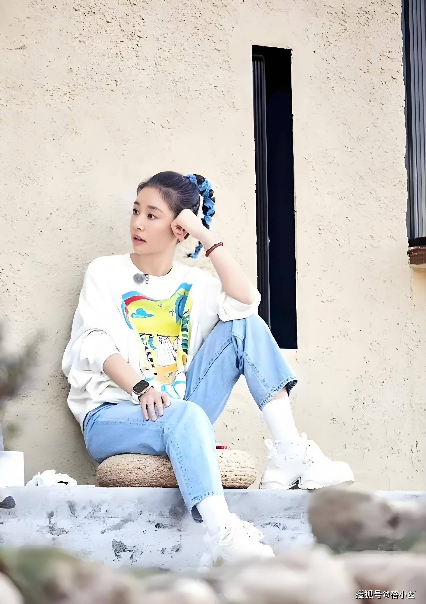— 49岁“林心如”带火了“哪吒裤”,搭配粉T恤+老爹鞋,洋气又减龄 —