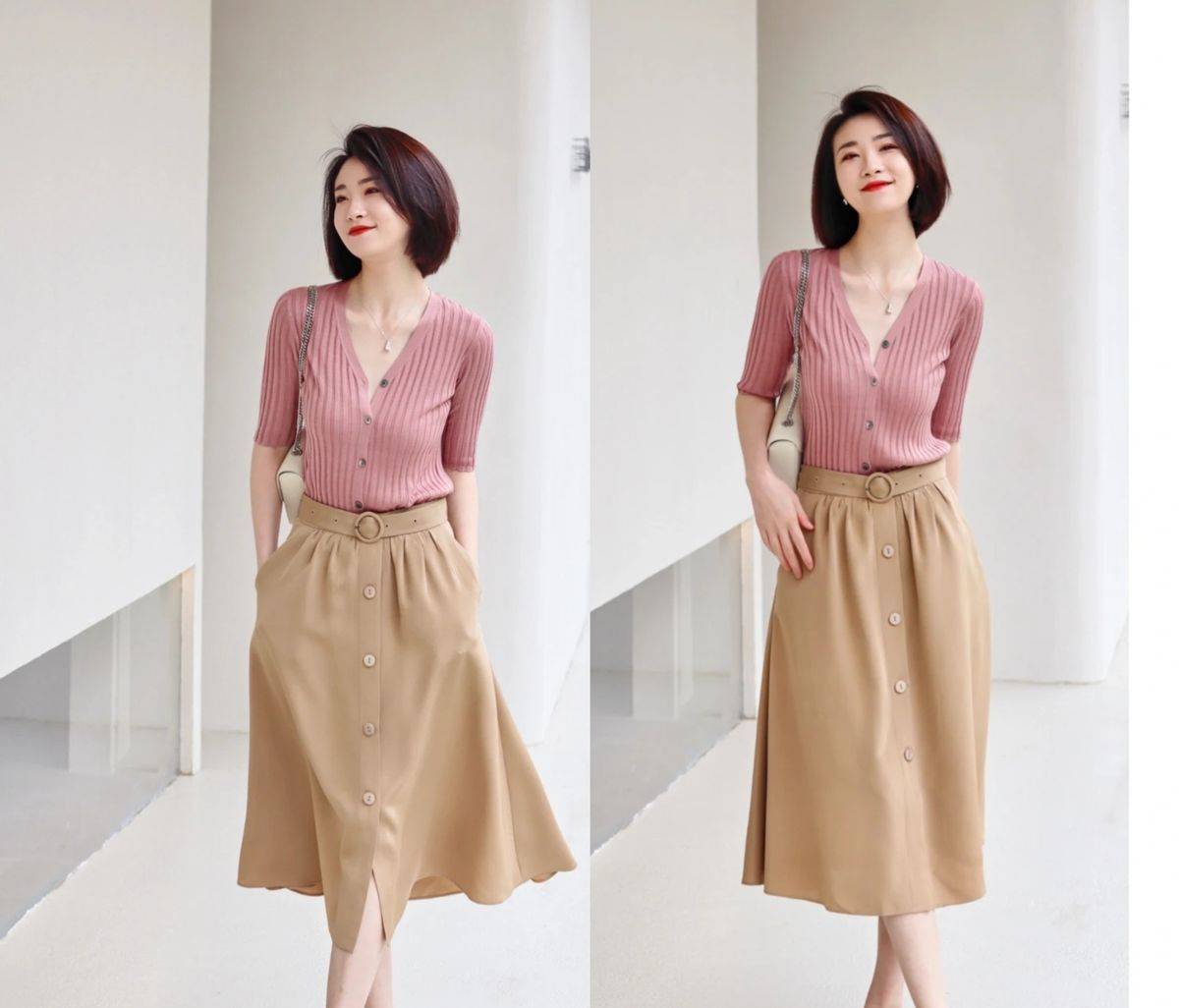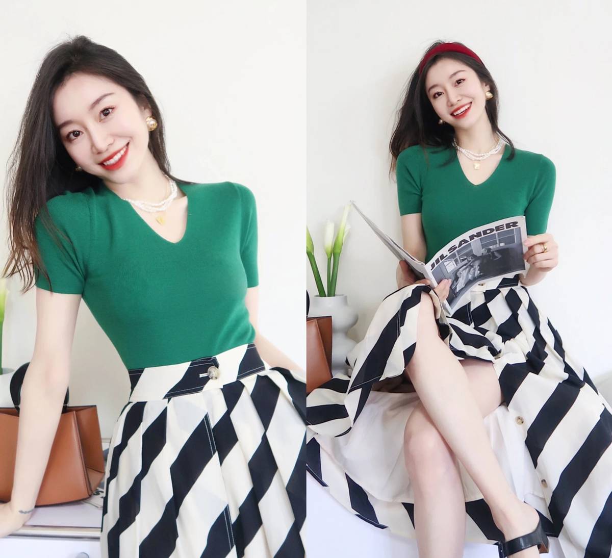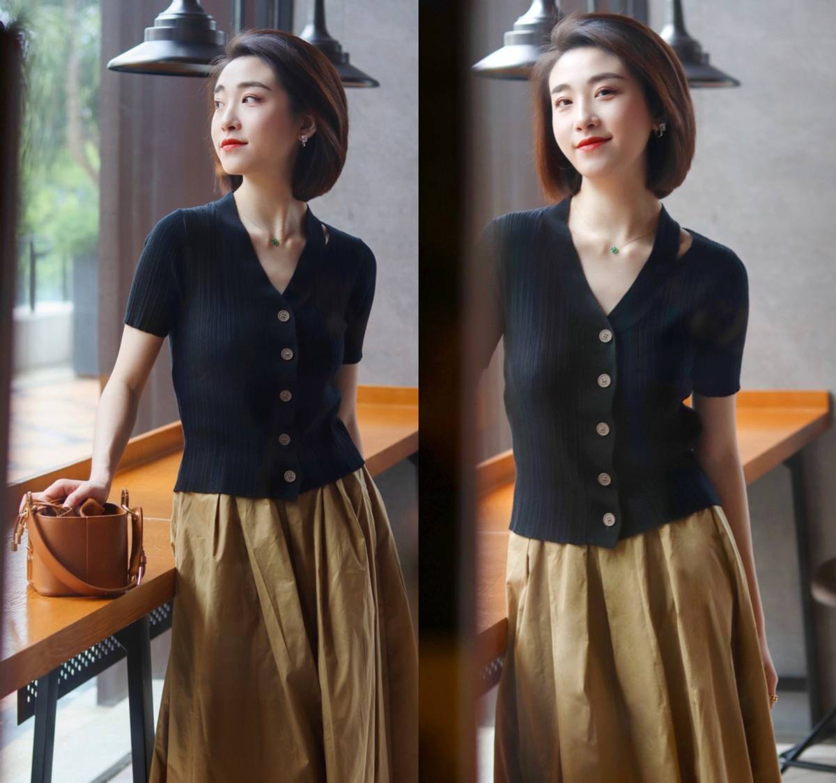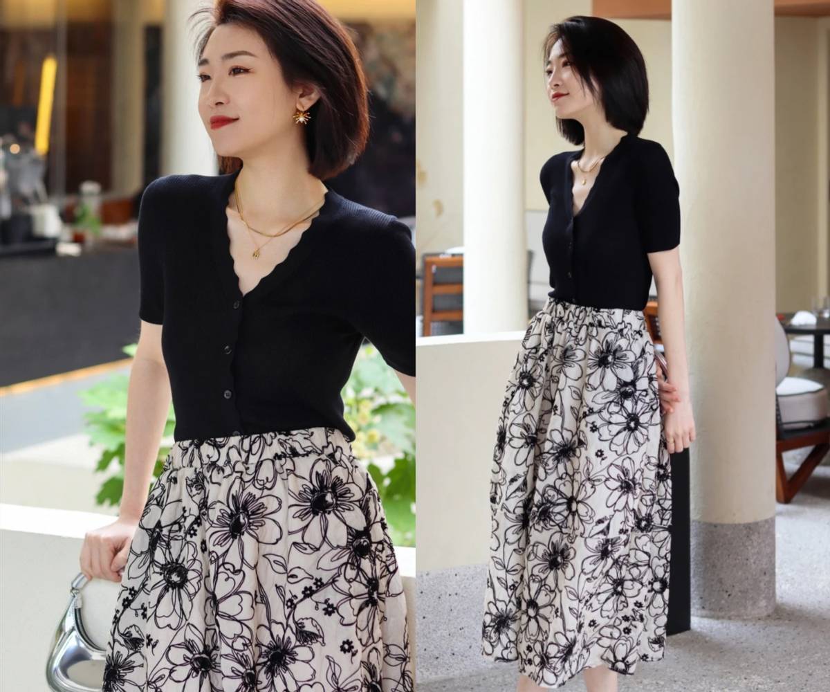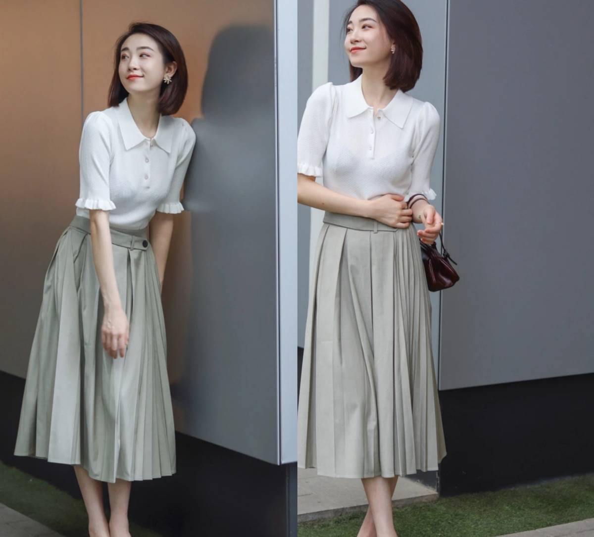 — 三四十岁的女人夏季咋穿?试试“针织衫+过膝半裙”,温柔又知性 —