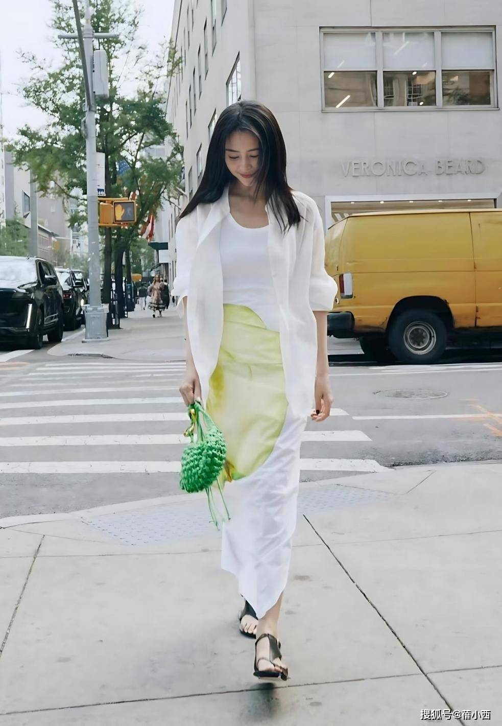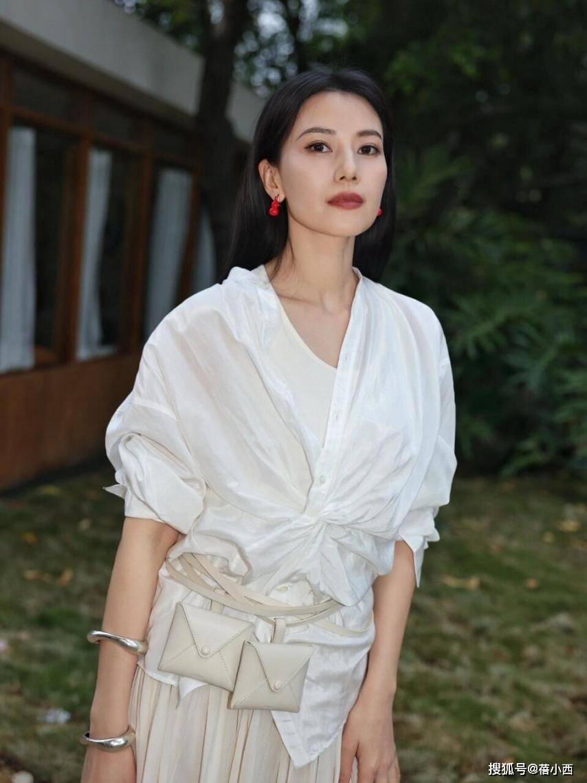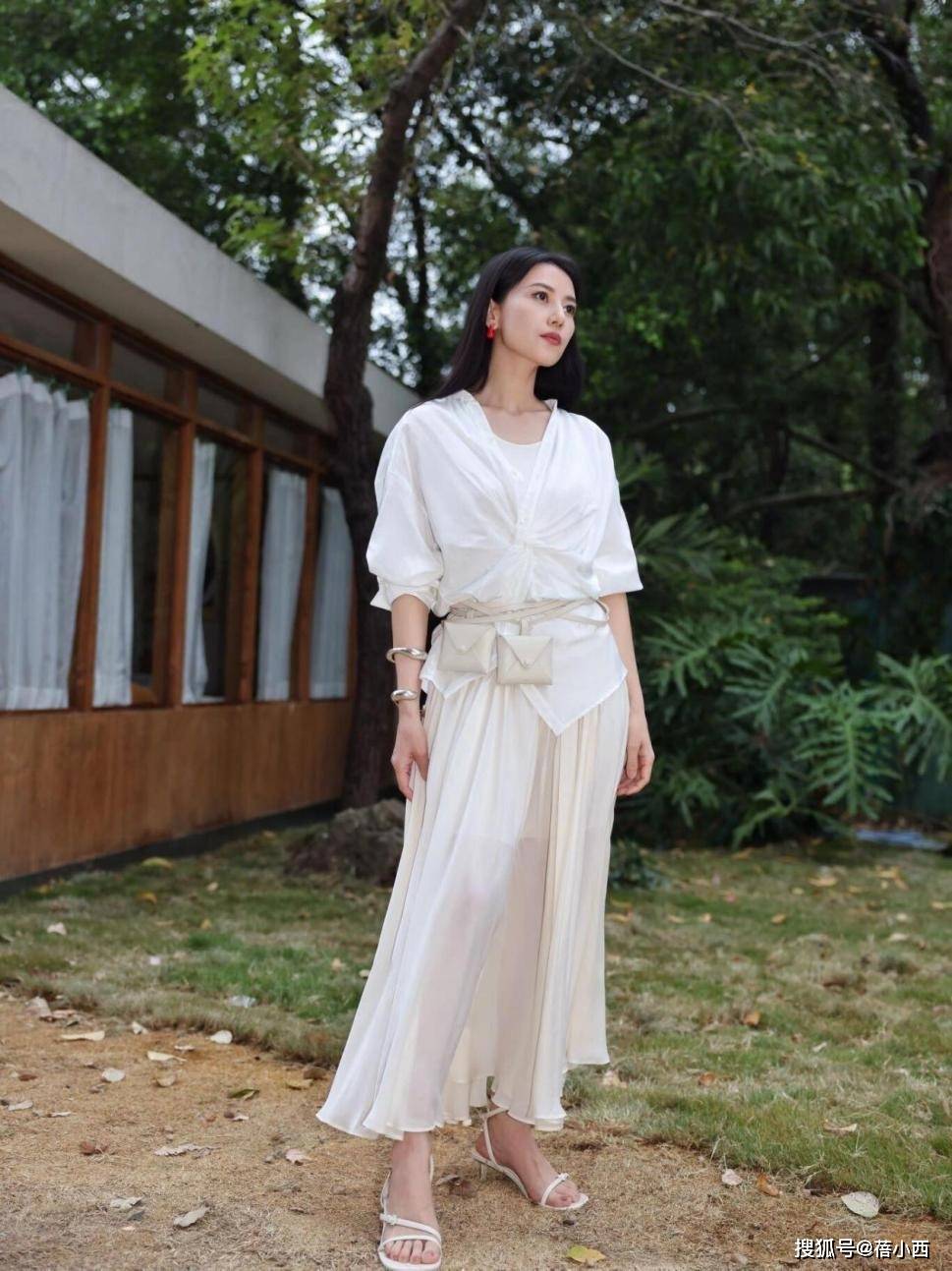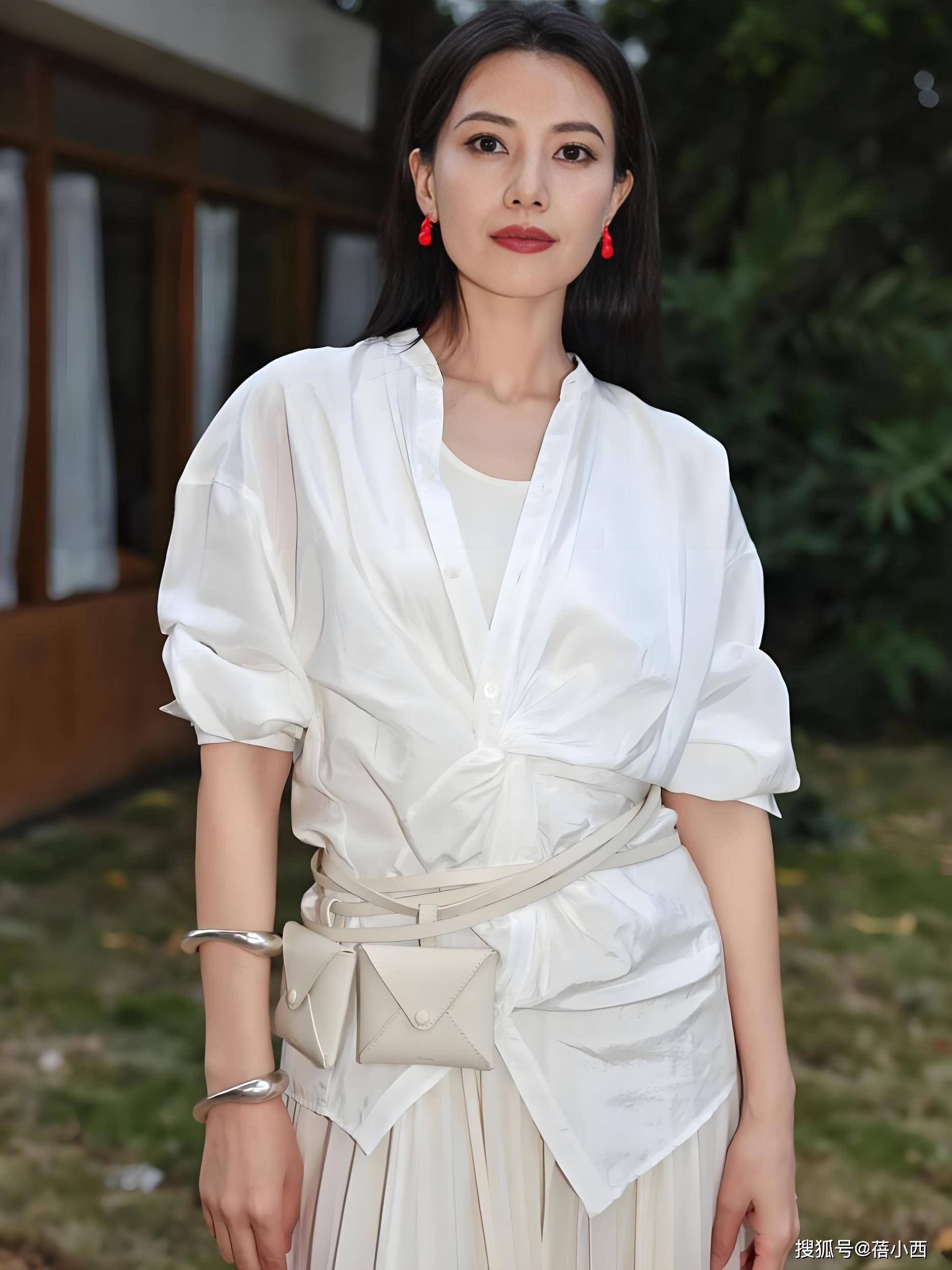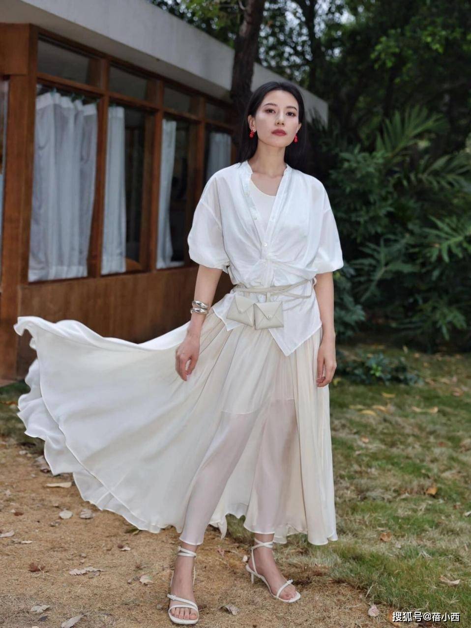 — 45岁“高圆圆”带火了“白开水”穿搭,配半身裙+凉鞋,时髦减龄 —