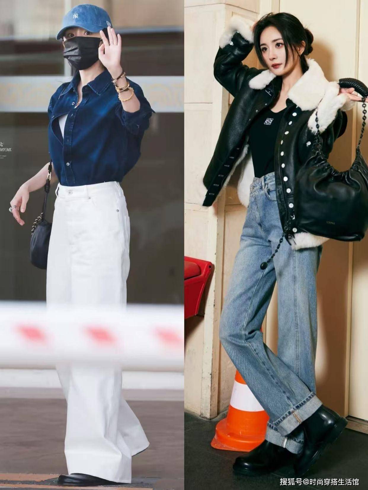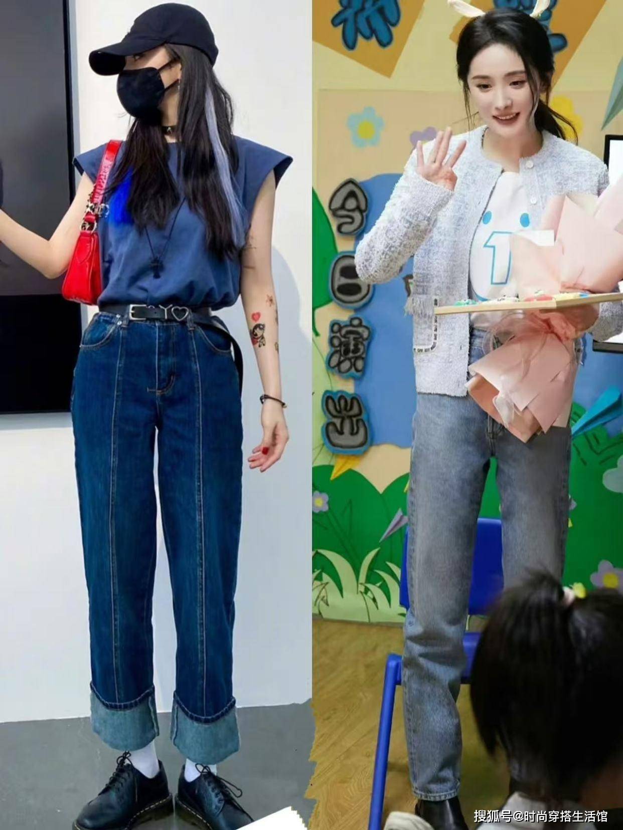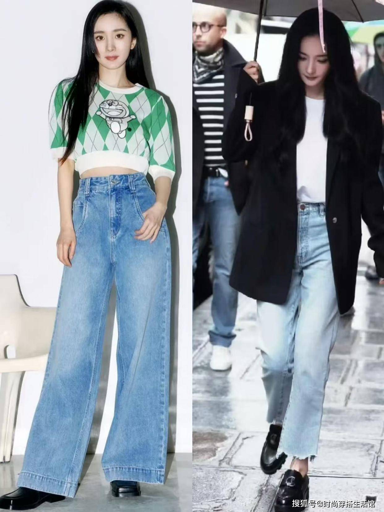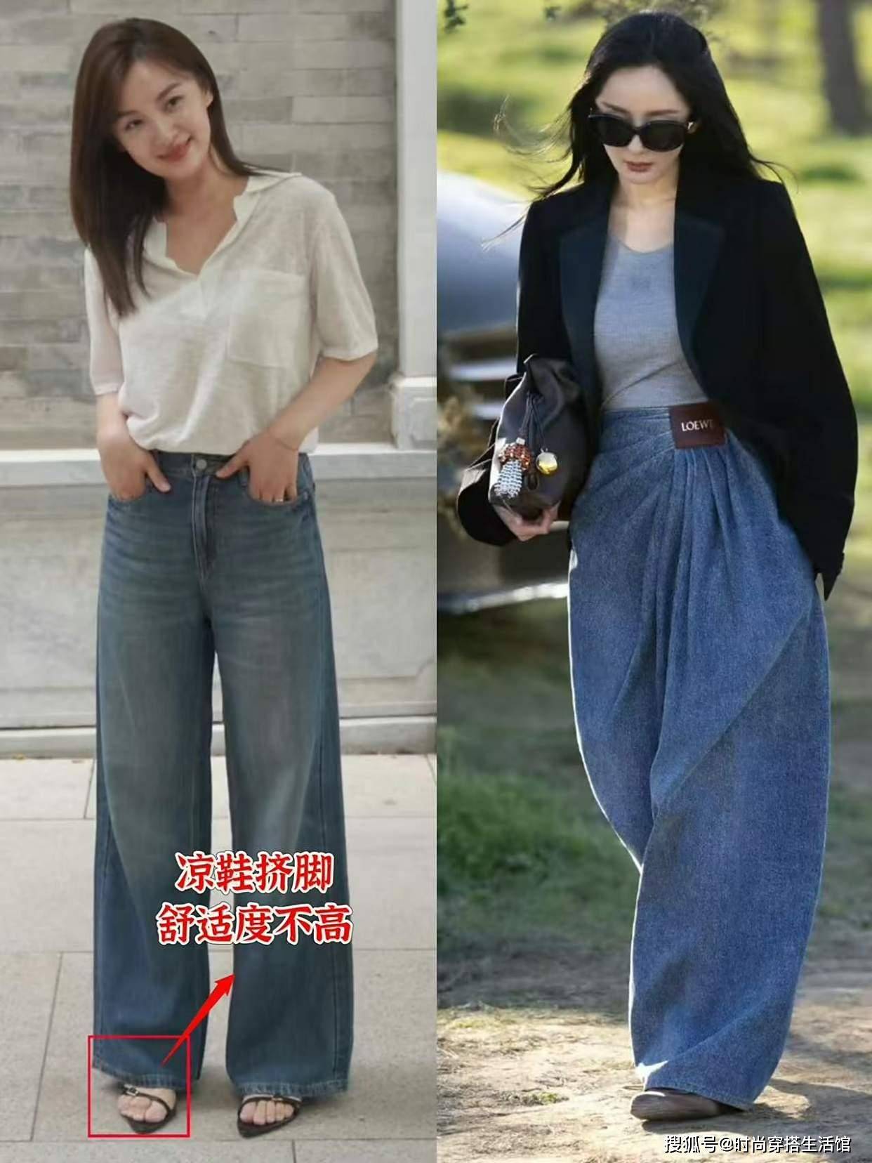 — “牛仔裤”下面尽量不要搭凉鞋、运动鞋,瞧杨幂这样穿,洋气显高 —