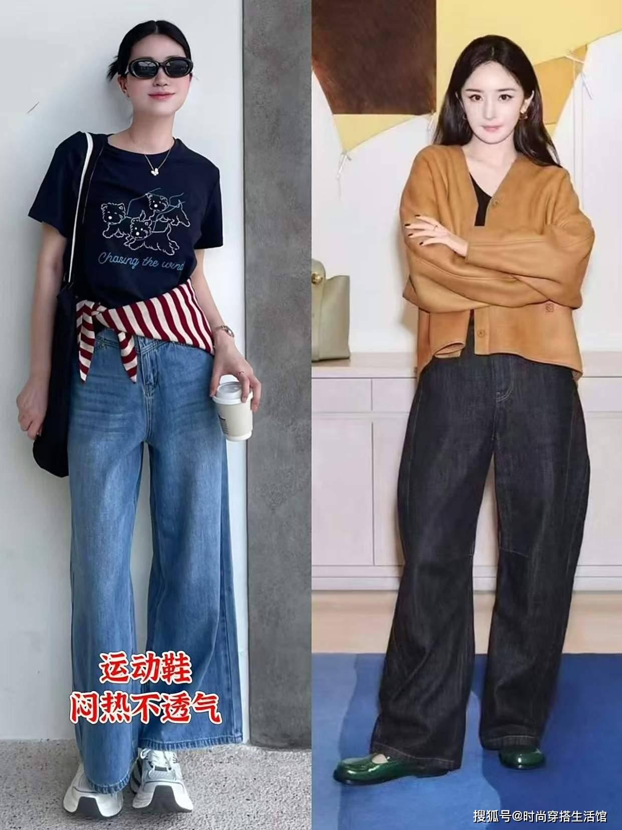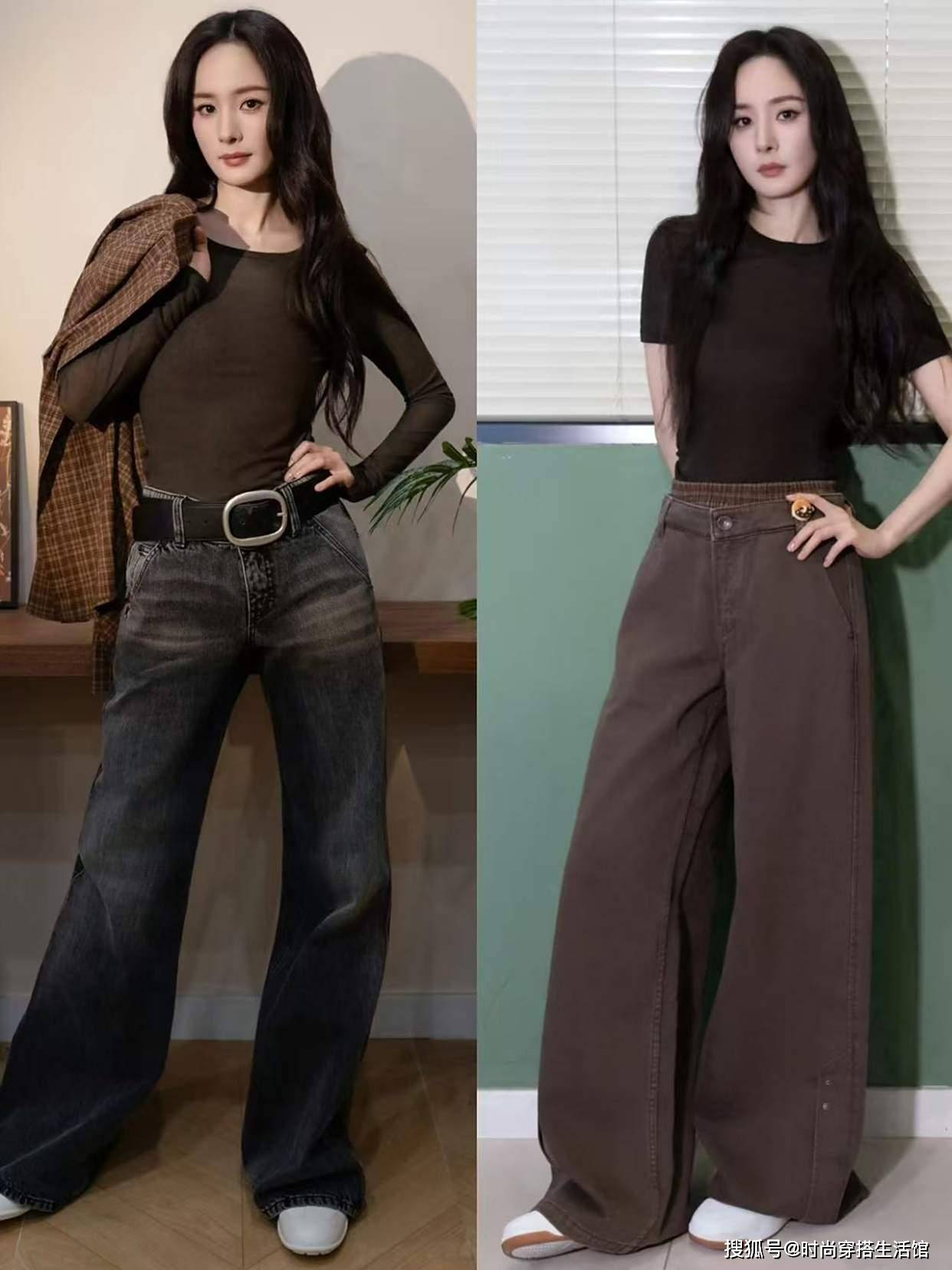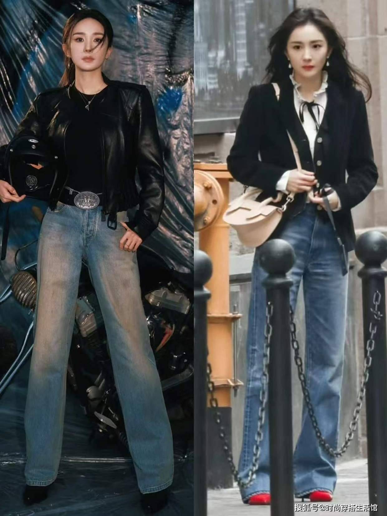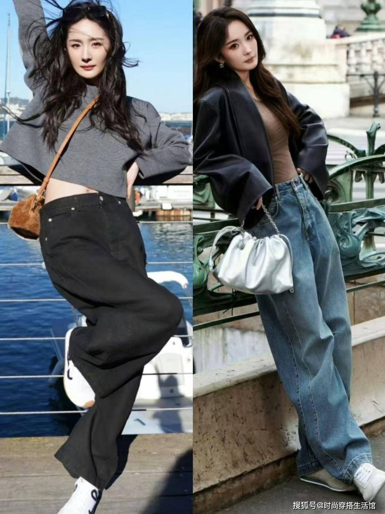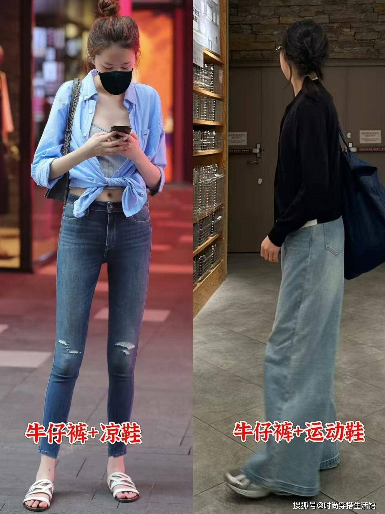 — “牛仔裤”下面尽量不要搭凉鞋、运动鞋,瞧杨幂这样穿,洋气显高 —