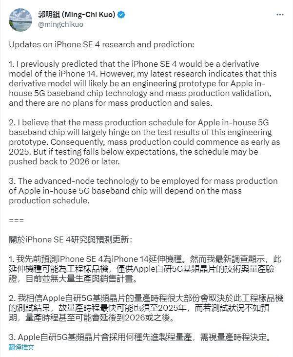 — 郭明錤:iPhone SE4或许在2025年量产 —