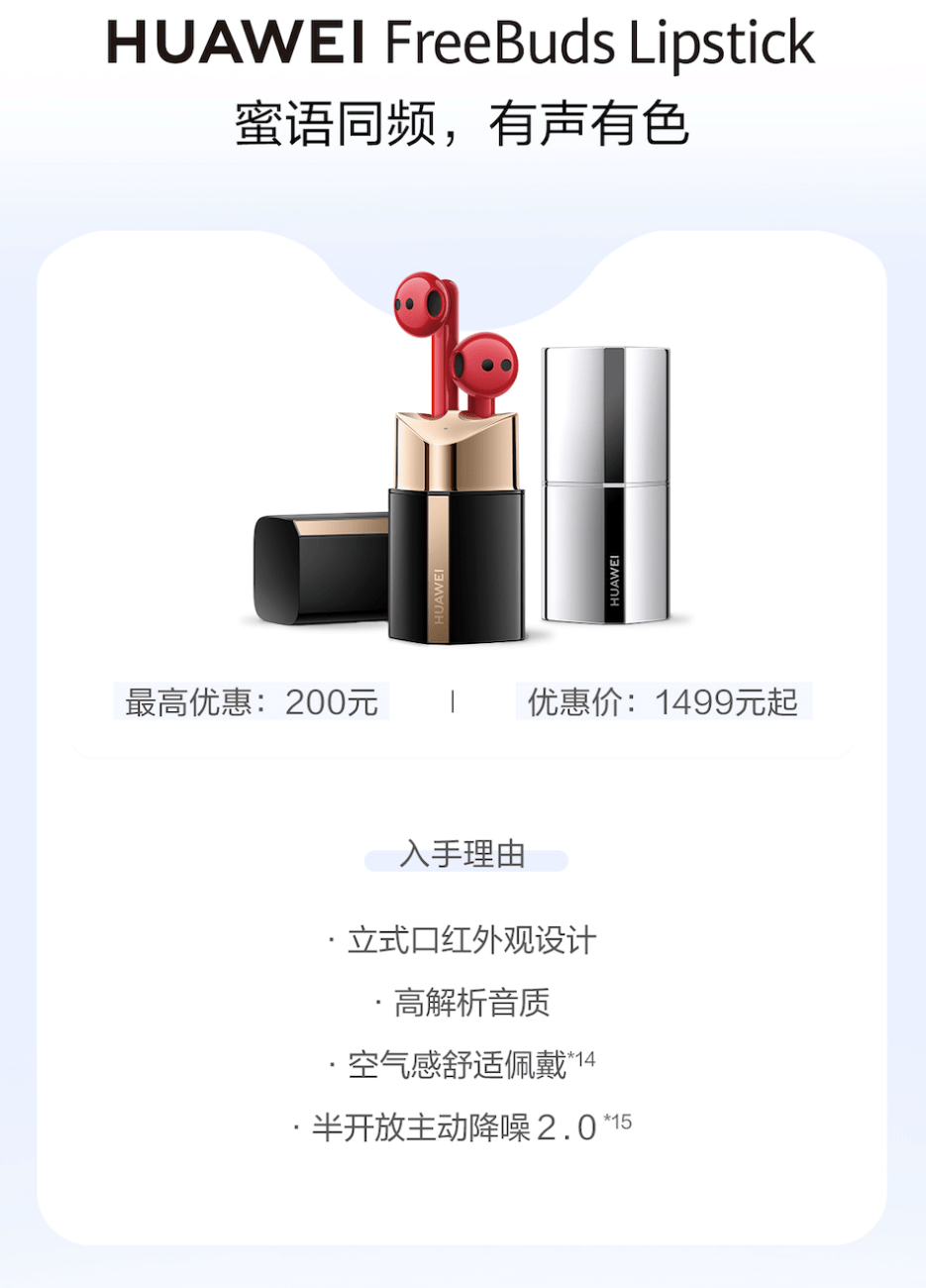 华为口红freebuds lipstick耳机【优惠券:满700元减100元】