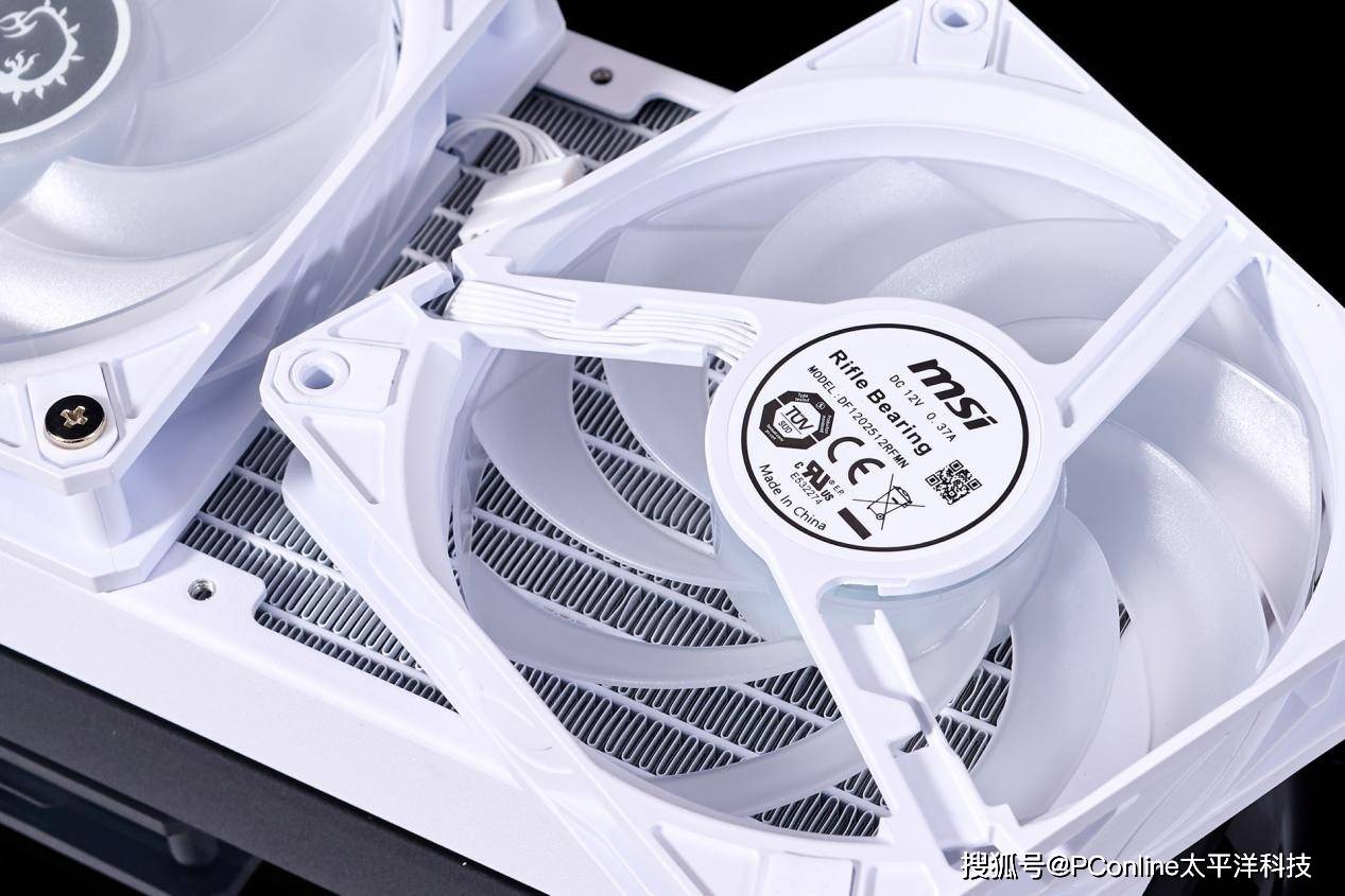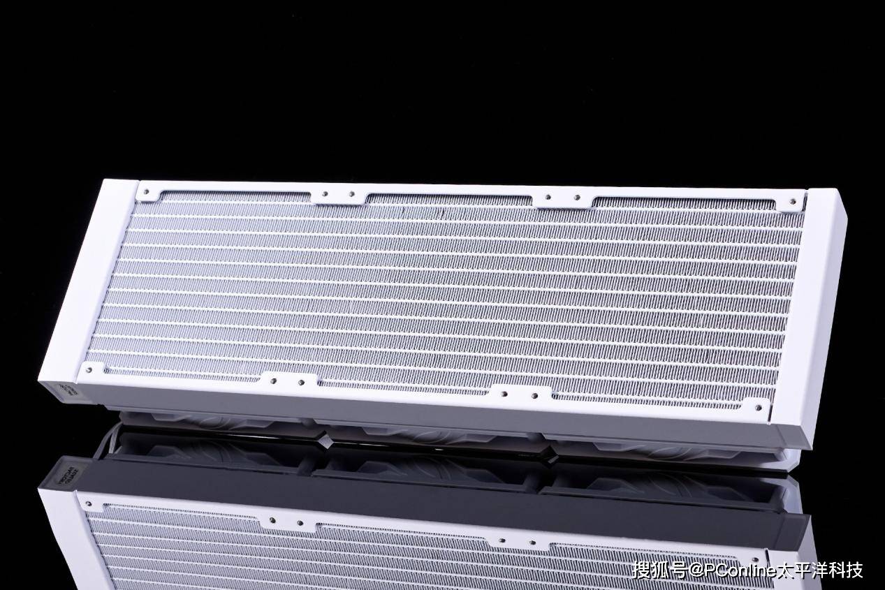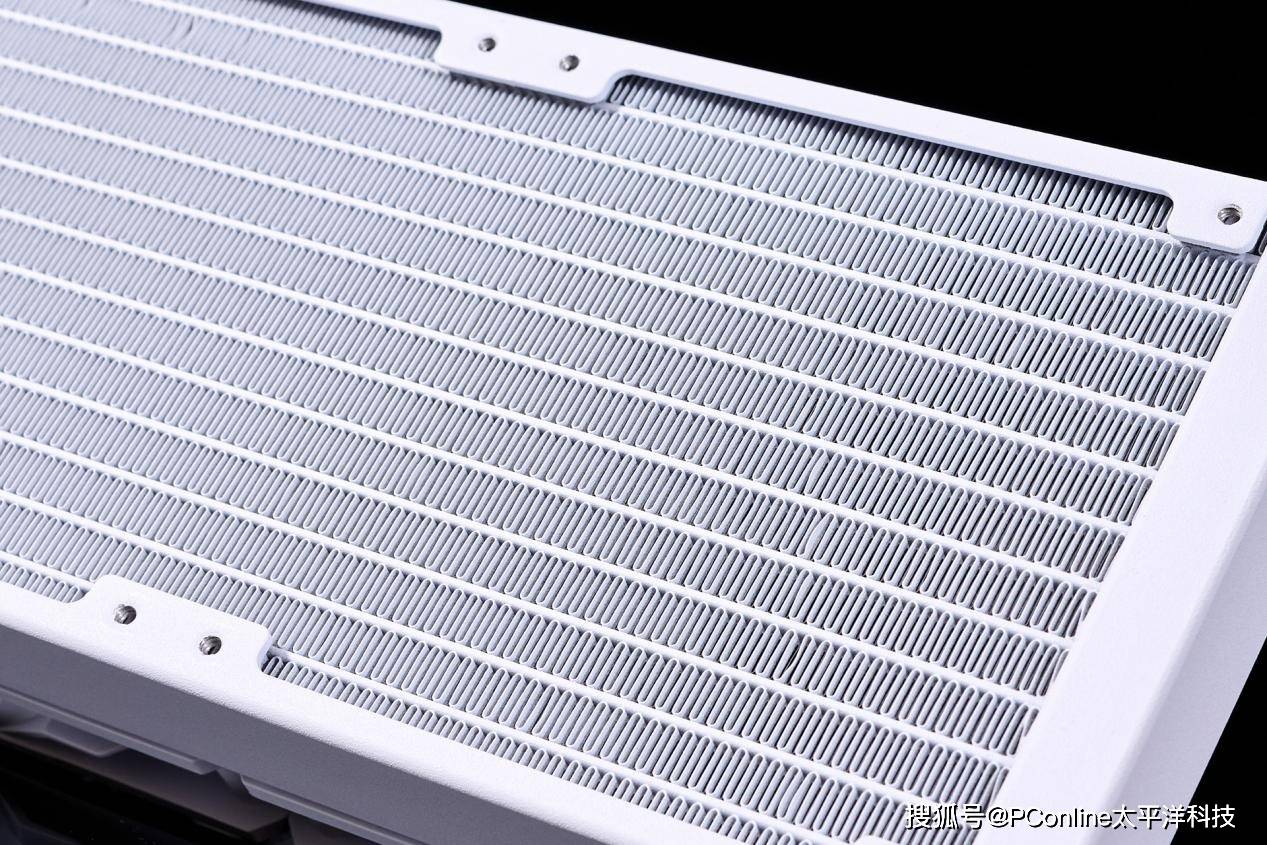 冷排之间的散热片做工还不错,较为规整。微星MPG CORELIQUID P13 WHITE冰曜一体水冷散热器,安装