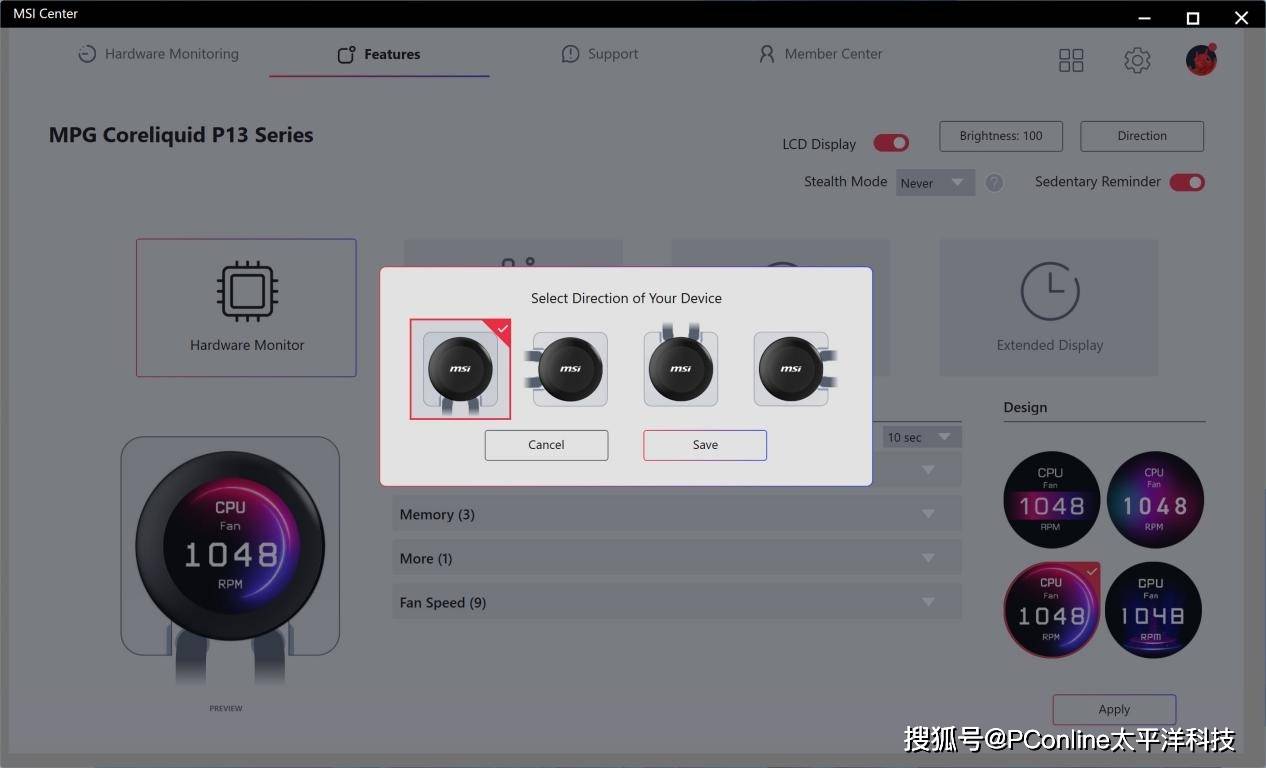 当然,为了满足不同用户对显示器显示的需求,水冷头上的显示方向能够直观地根据不同方向进行调整。