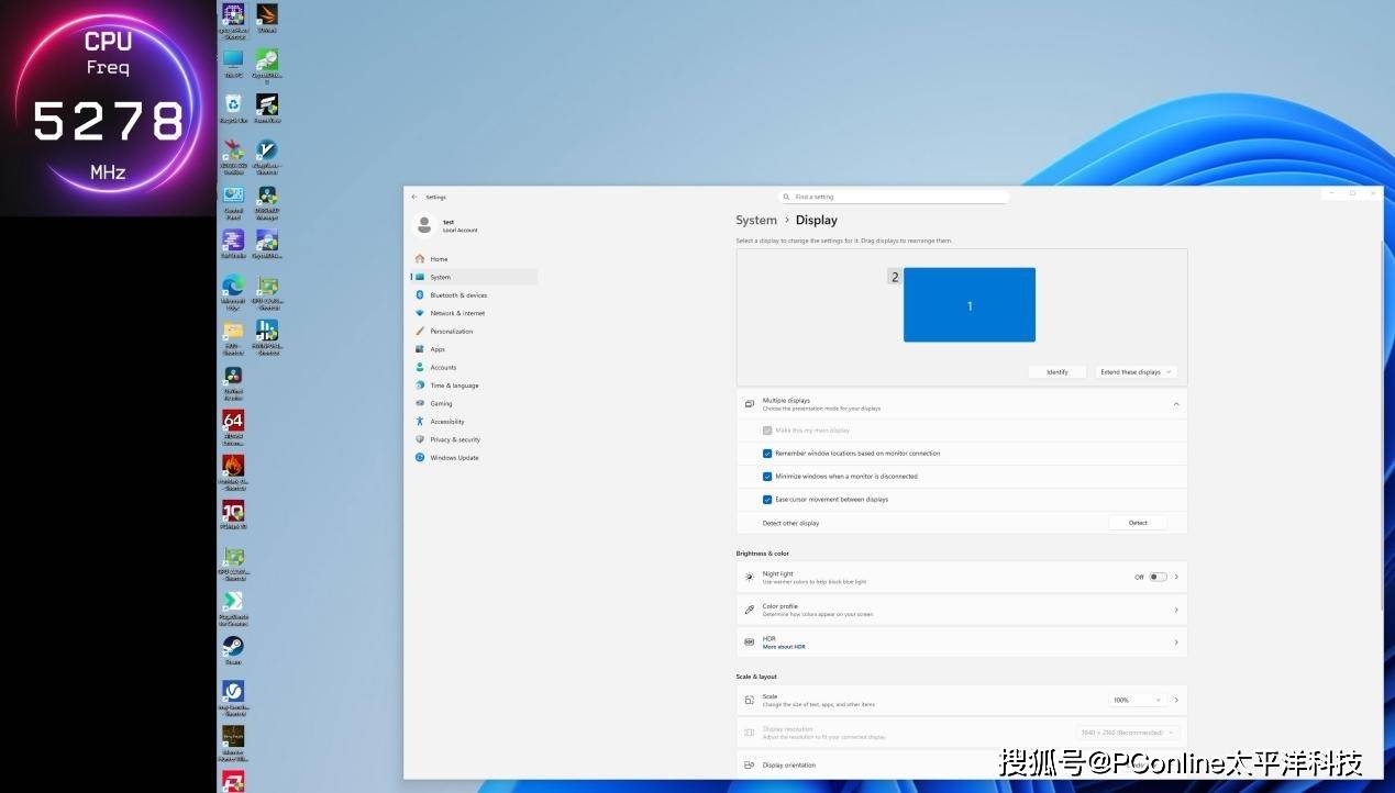 当屏幕成功连接上下之后,系统即默认扩展第2屏幕。屏幕分辨率为480*480px。微星MPG CORELIQUID P13 WHITE冰曜一体水冷散热器,装机效果