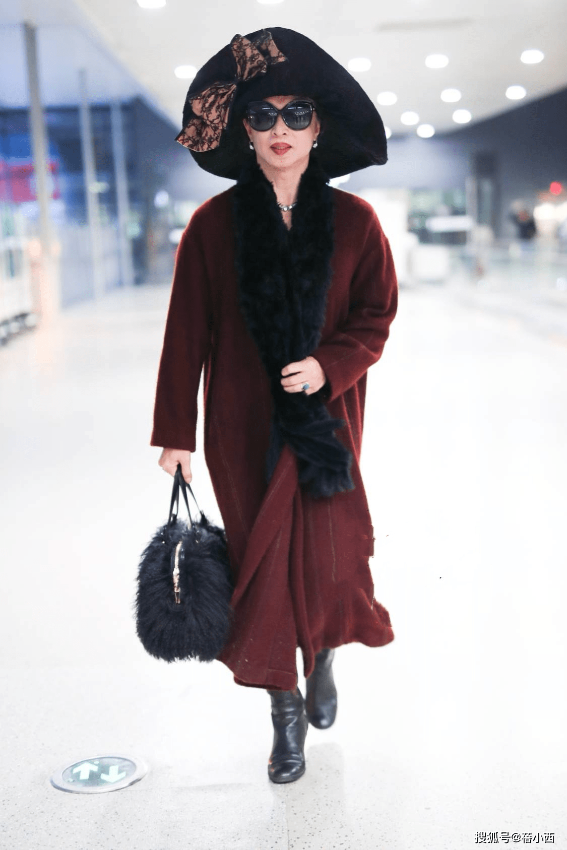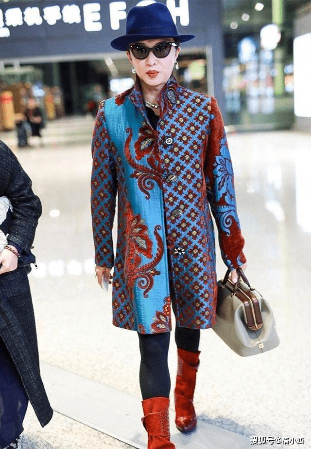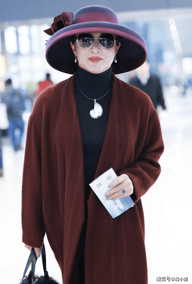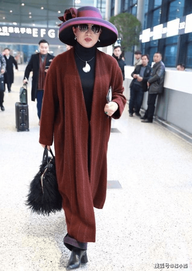 — “金星”机场穿搭引人注目,红色大衣和紫色帽子的搭配尽显高贵贵妇风范 —