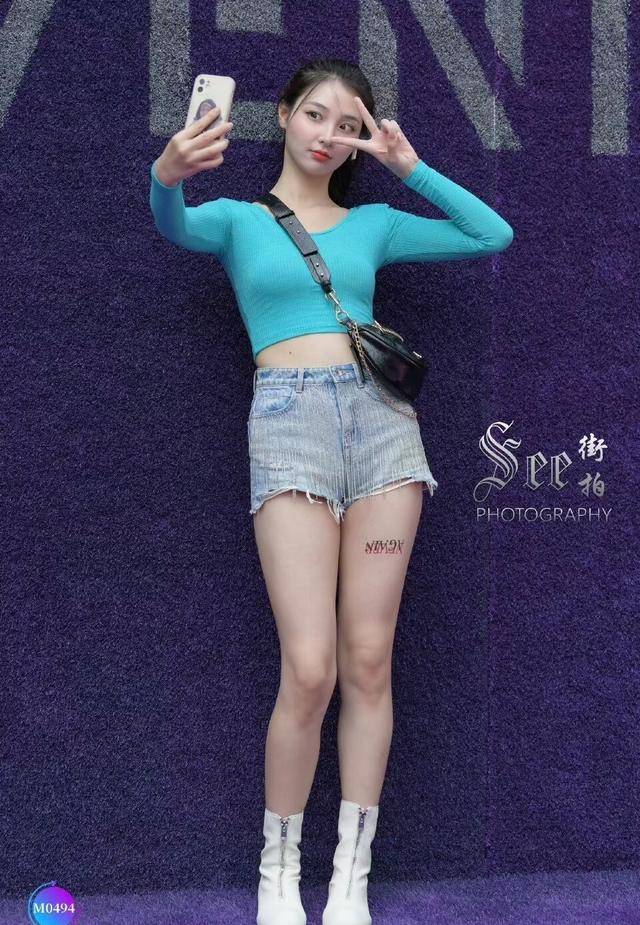 — 穿着长袖露脐打底衫配绿色瑜伽裤和水晶高跟鞋,展现出优美的气质与魅力 —