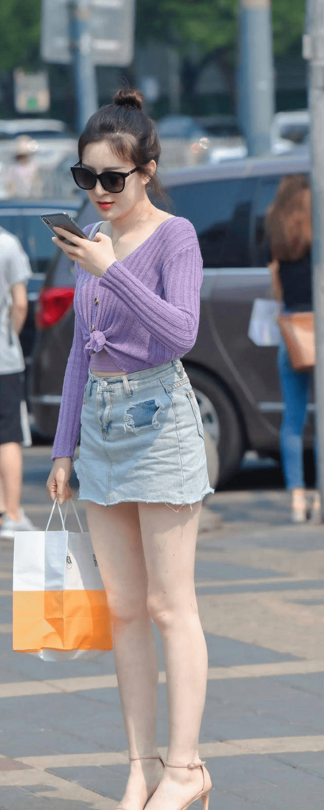 — 时尚的女孩穿牛仔短裙,搭配潮流时尚,展现迷人的美腿线条 —