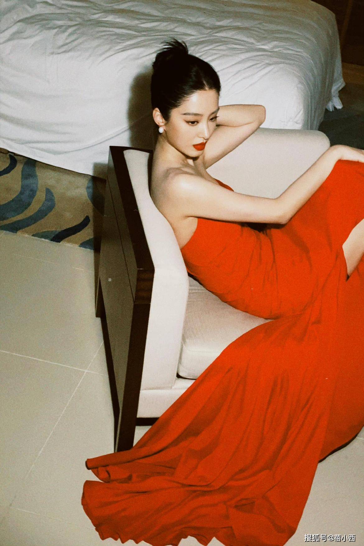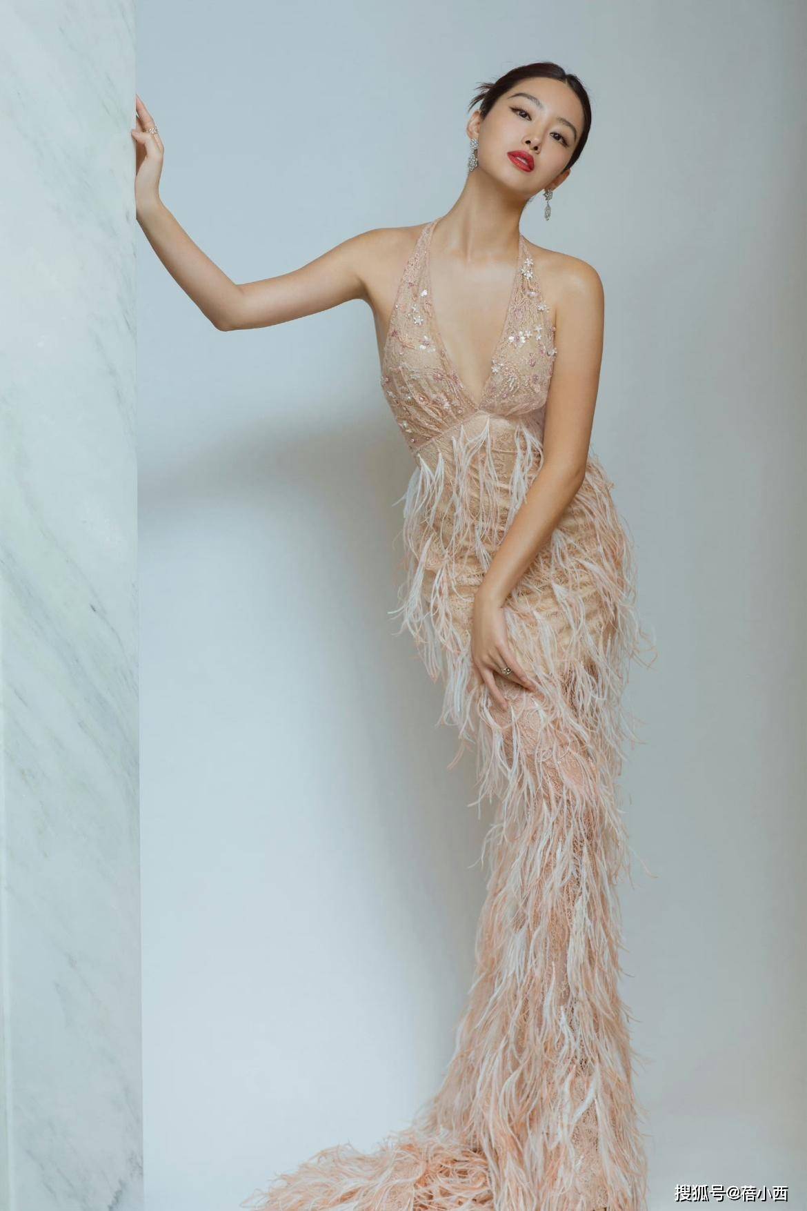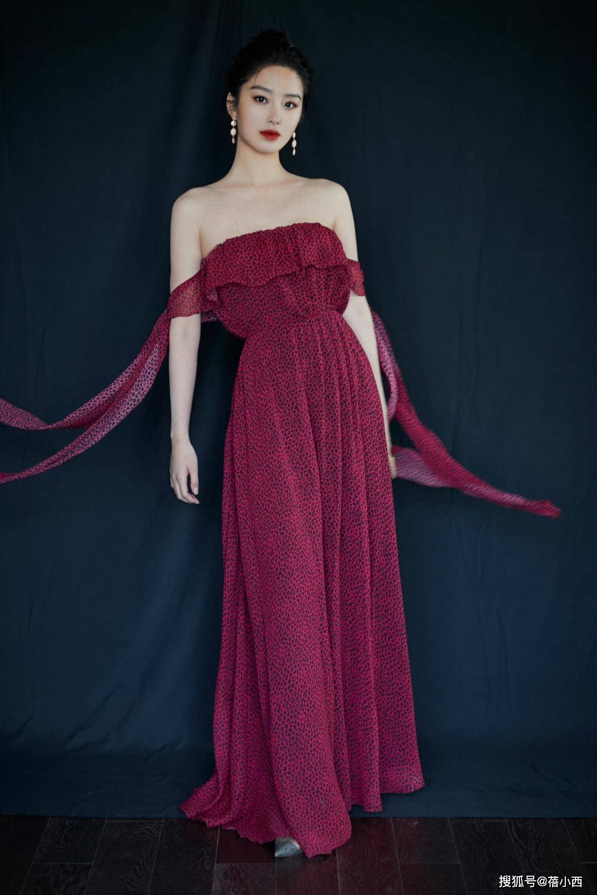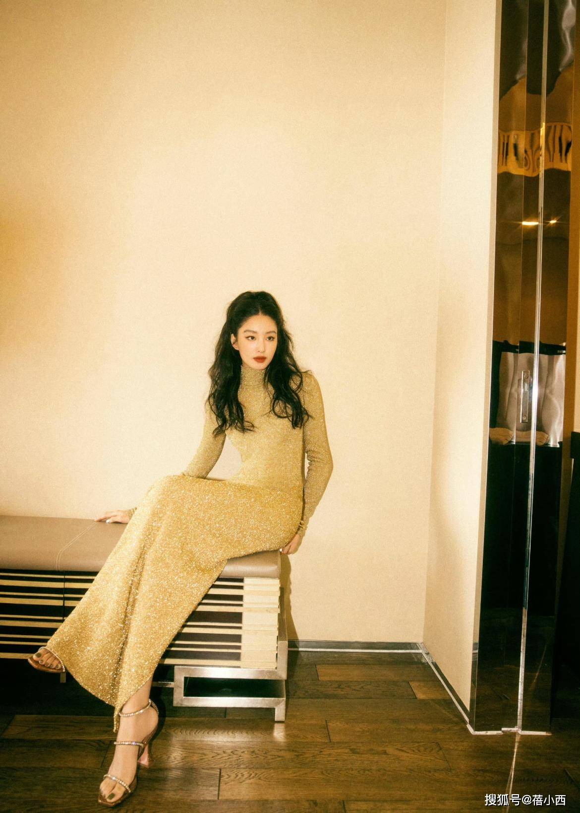 — 重写后的标题:杨采钰完美展现复古魅力,金色亮片长裙加半扎发美艳动人 —