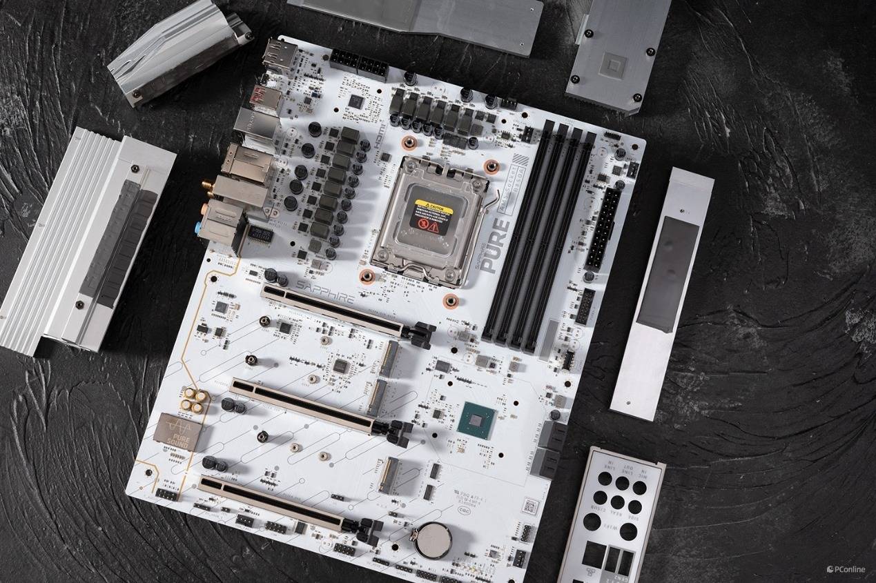 蓝宝石PURE极地B850M WIFI主板与之前我们评测过的蓝宝石NiTRO+氮动B850M WIFI非常相似,不过这款主板采用的是极地设计语言,更适合喜欢纯白主题装机的用户选择,与氮动系列的硬核不同,极地系列更显优雅。