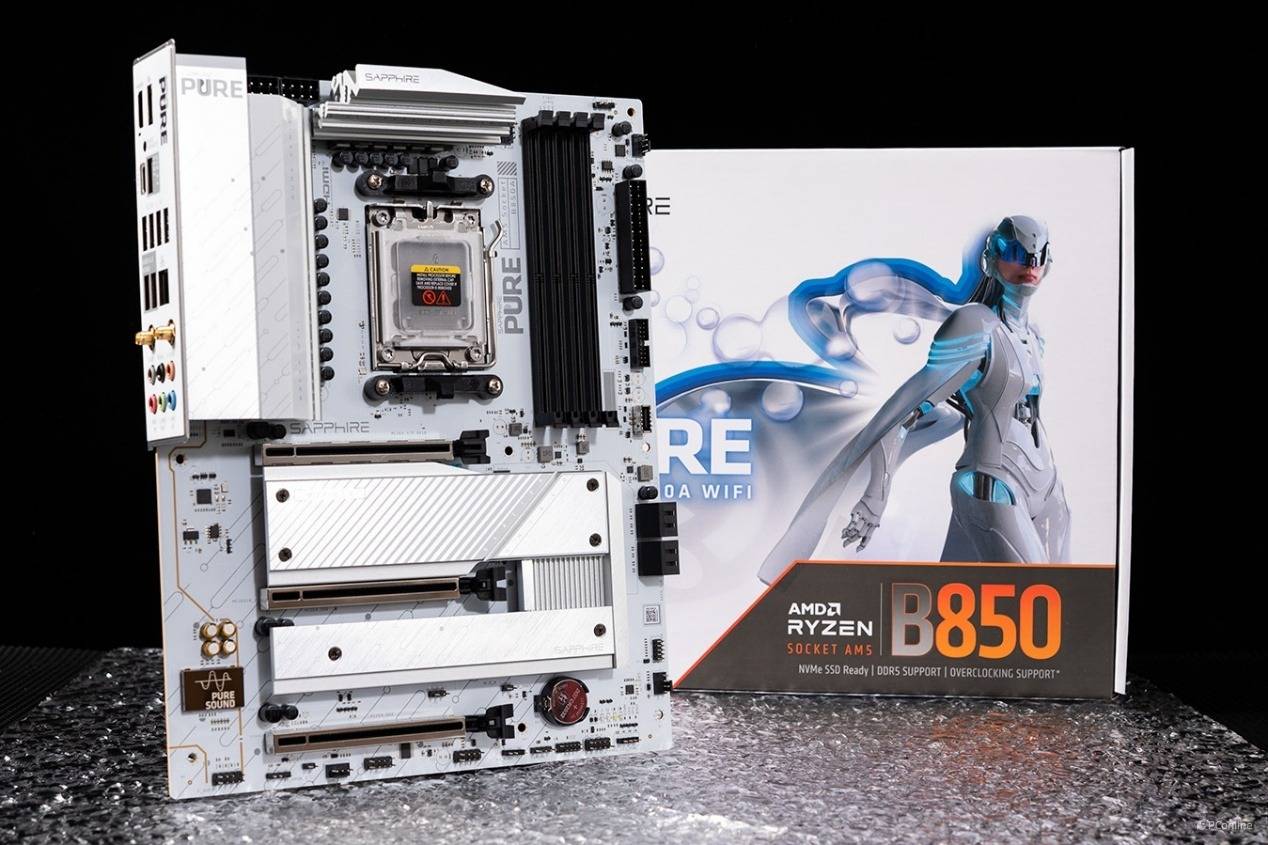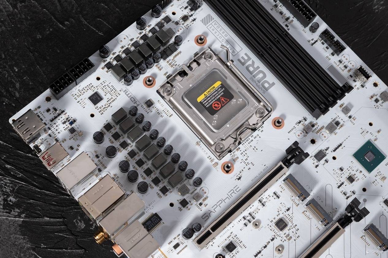 看过了蓝宝石PURE极地B850A WIFI主板,我们再来看看此次PURE极地家族的另一位成员——蓝宝石PURE极地B850M WIFI主板。