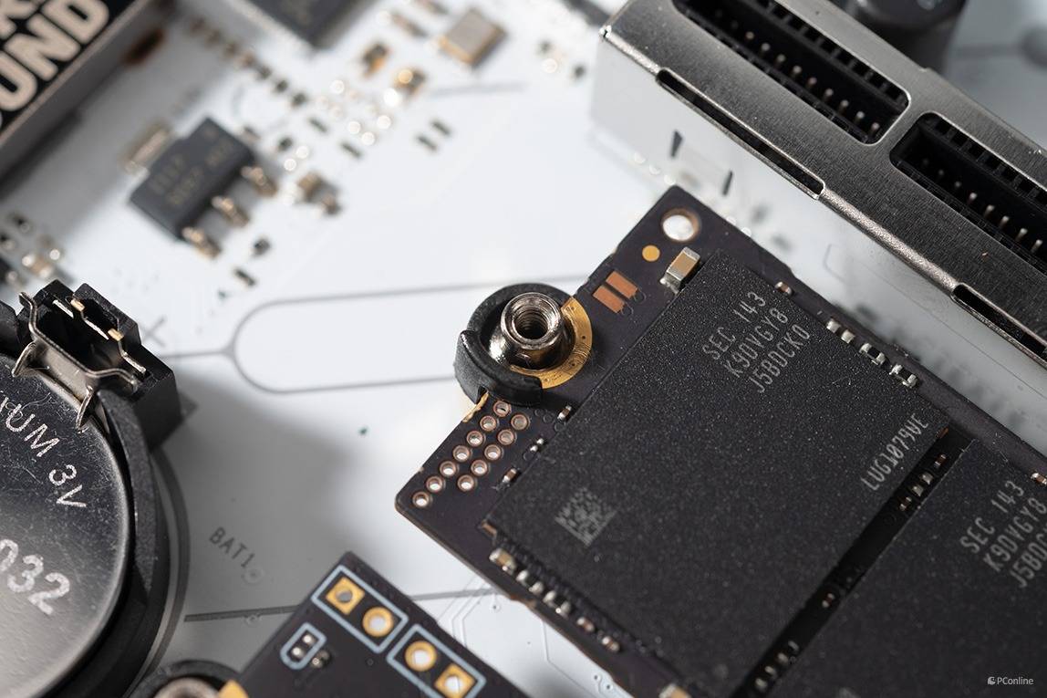 覆盖M.2固态硬盘的散热装甲不仅份量结实,其内侧还有高品质的导热垫加持,能够进一步带离硬盘热量。