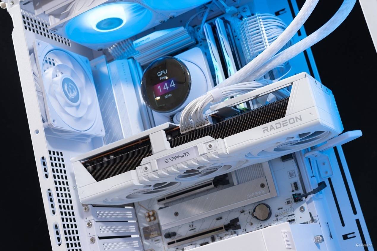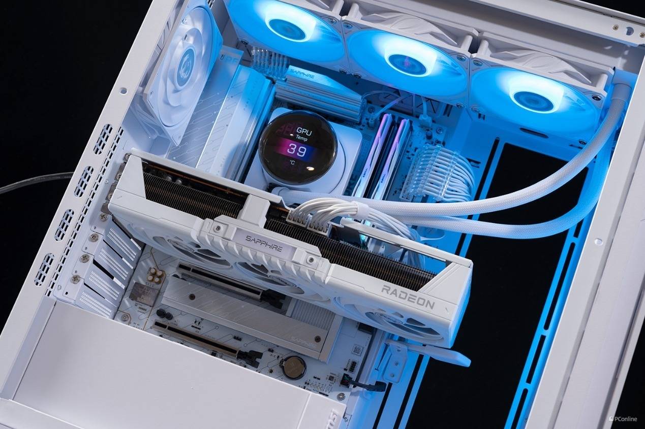 搭配同样是白色设计的蓝宝石PURE极地AMD RADEON RX 9070 16GB GDDR6 OC显卡更显精致,非常养眼。