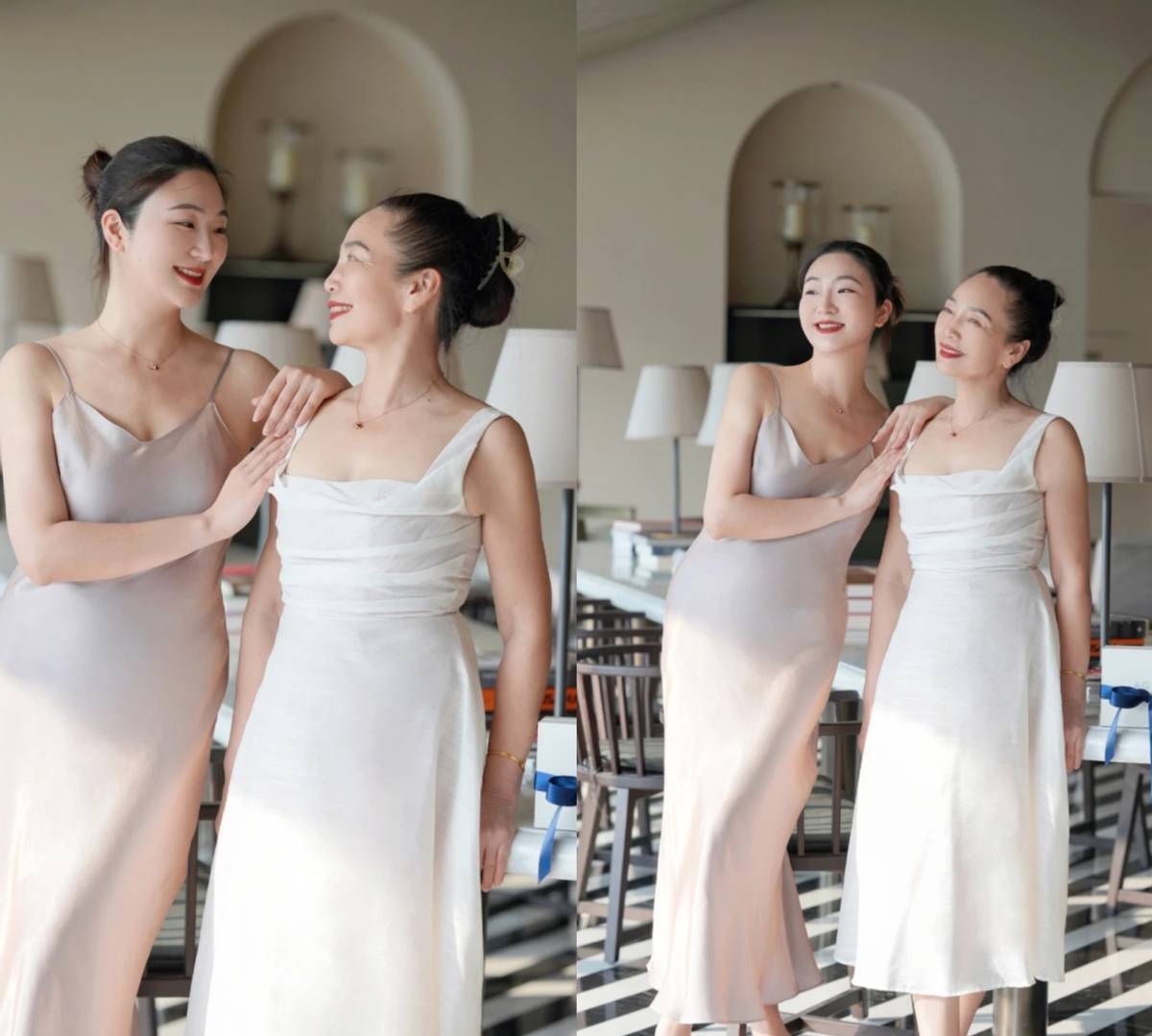 - 郭晶晶与闺蜜在豪宅里聚会!穿V领衬衫+针织衫,高级、显贵又松弛