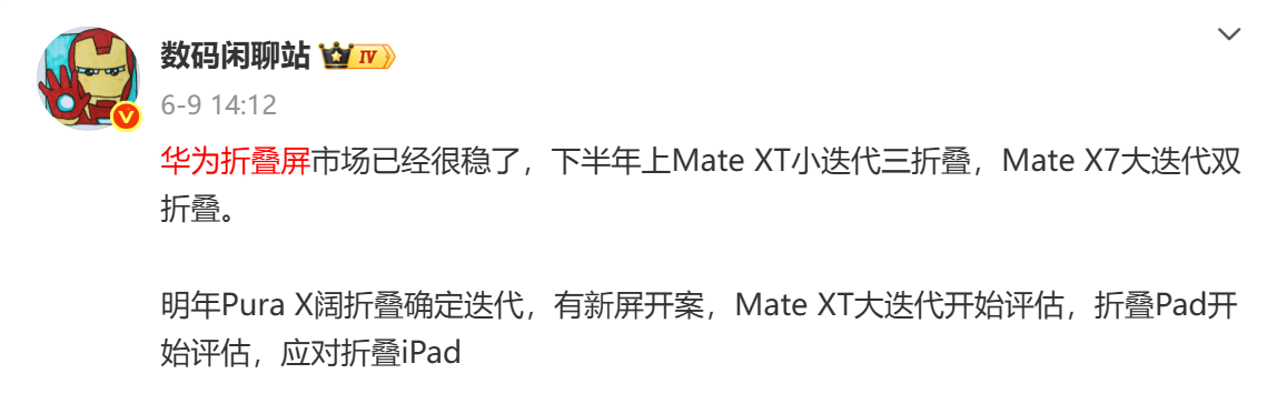 — 消息称华为Pura X阔折叠出货量超70万台 多款折叠新品即将亮相 —