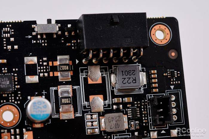 抽丝剥茧,在这个供电接口的背后还有R22电容坐镇,为显卡提供更稳定的电量支持,这也是技嘉RTX 4070 MASTER能够满血输出的重要支持之一。