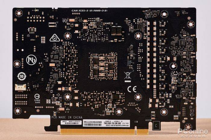 首先看看PCB的正面,PCB上的接口、供电、核心、显存,以及辅助供电位置都相当的合理且规正,有大厂出品的质感,内部PCB电路使用了全自动制程技术,精密自动化制程可进一步提高可靠性,并且PCB也支持三防保护,将防护性拉满了,让PCB更持久耐用。