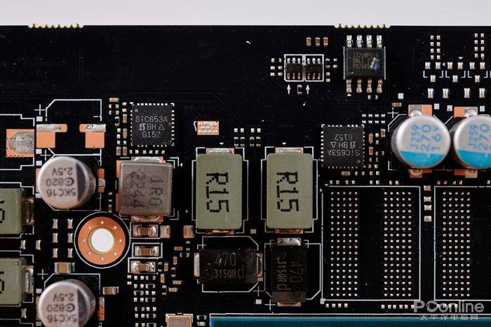 甚至就连显存供电也用上了SiC653A,与核心供电同等规格,可见堆料之豪华。