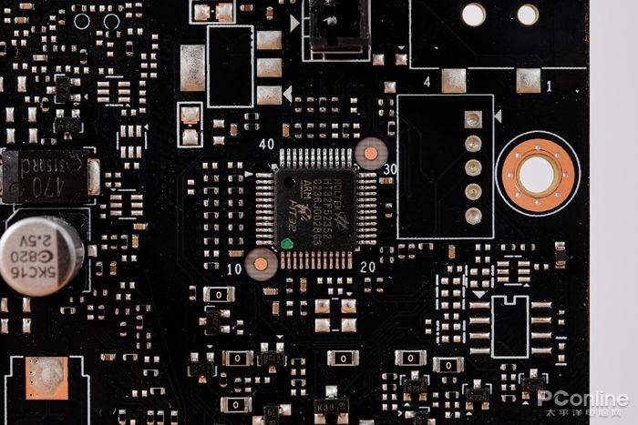 而HT32F52352芯片则是来自合泰,它是显卡的RGB控制芯片,你所见到的炫酷灯光就是它的功劳。