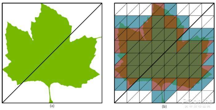 三角形。根据Alpha 通道的不透明,透明与未知等三个不同的块状态进行处理:透明则直接忽略继续找下一个,不透明块则记录并告知命中,而未知的则交给着色器来确定如何处理,这样GPU很大部分都不需要进行着色器的调试处理,能够实现更为高效的性能。