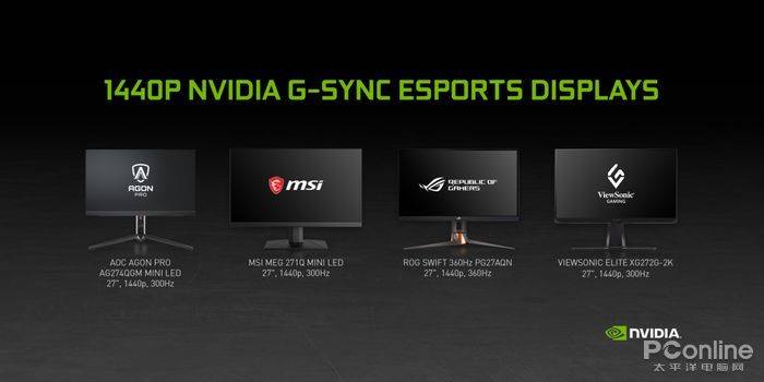 在GTC2022大会时已经透露将会还有4 款 1440p 分辨率的新型 G-SYNC 电竞显示器将要发布,包括采用mini-LED技术的AOC AG274QGM – AGON PRO Mini LED、MSI MEG 271Q Mini LED 和 ViewSonic XG272G-2K Mini LED三款显示器刷新率均为300Hz,而最猛的是ASUS ROG Swift 360 Hz PG27AQN ,刷新率直接来到了360Hz。
