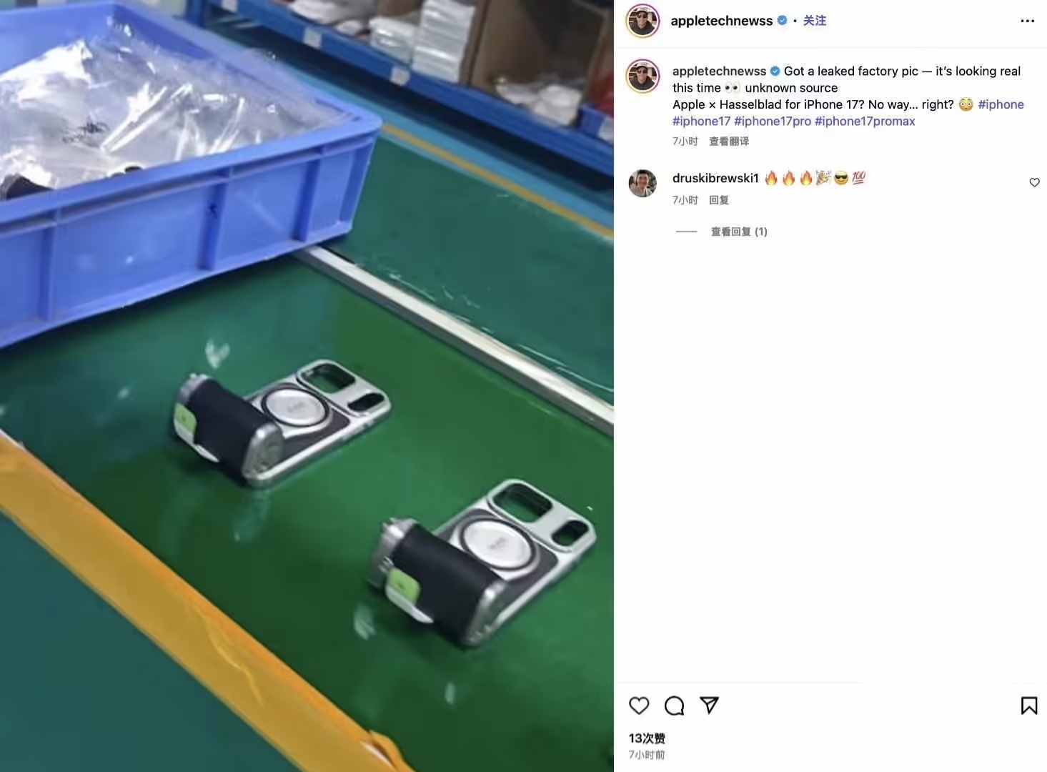 — 消息称哈苏将为iPhone17 Pro系列推出拍照手柄 售价或超1400元 —
