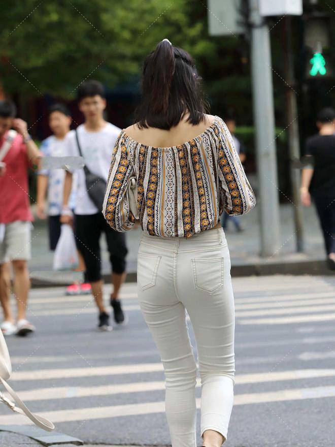 — 沙滩风花纹衬衫,搭配白色修身裤,轻松打造甜美女孩既视感 —