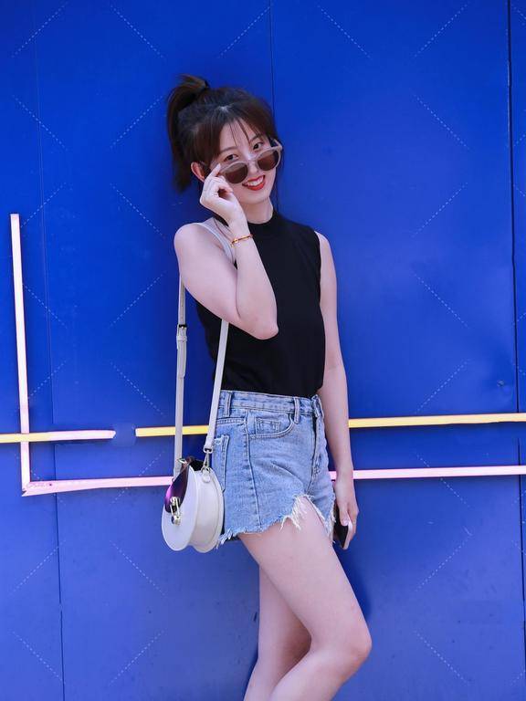 — 气质女孩的时尚穿搭,黑色斜肩短衫搭配牛仔裤,个性时髦自带气场 —