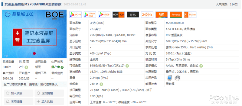 熊猫24英寸2k ips高清144hz电竞27【优惠券:满869元减500元】