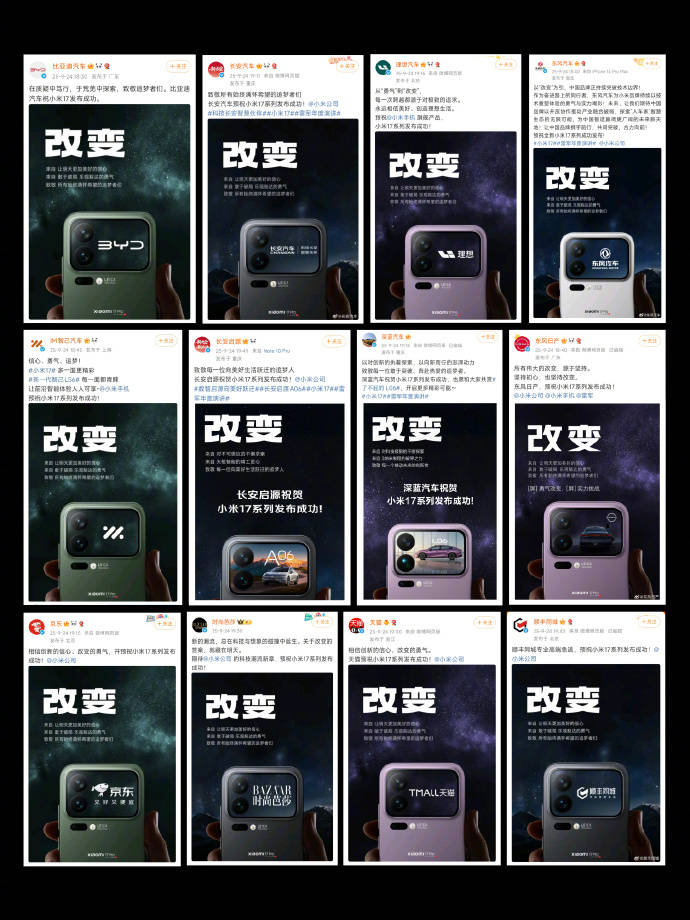 — 多家车企集体为小米17预热 品牌Logo亮相手机背屏 —