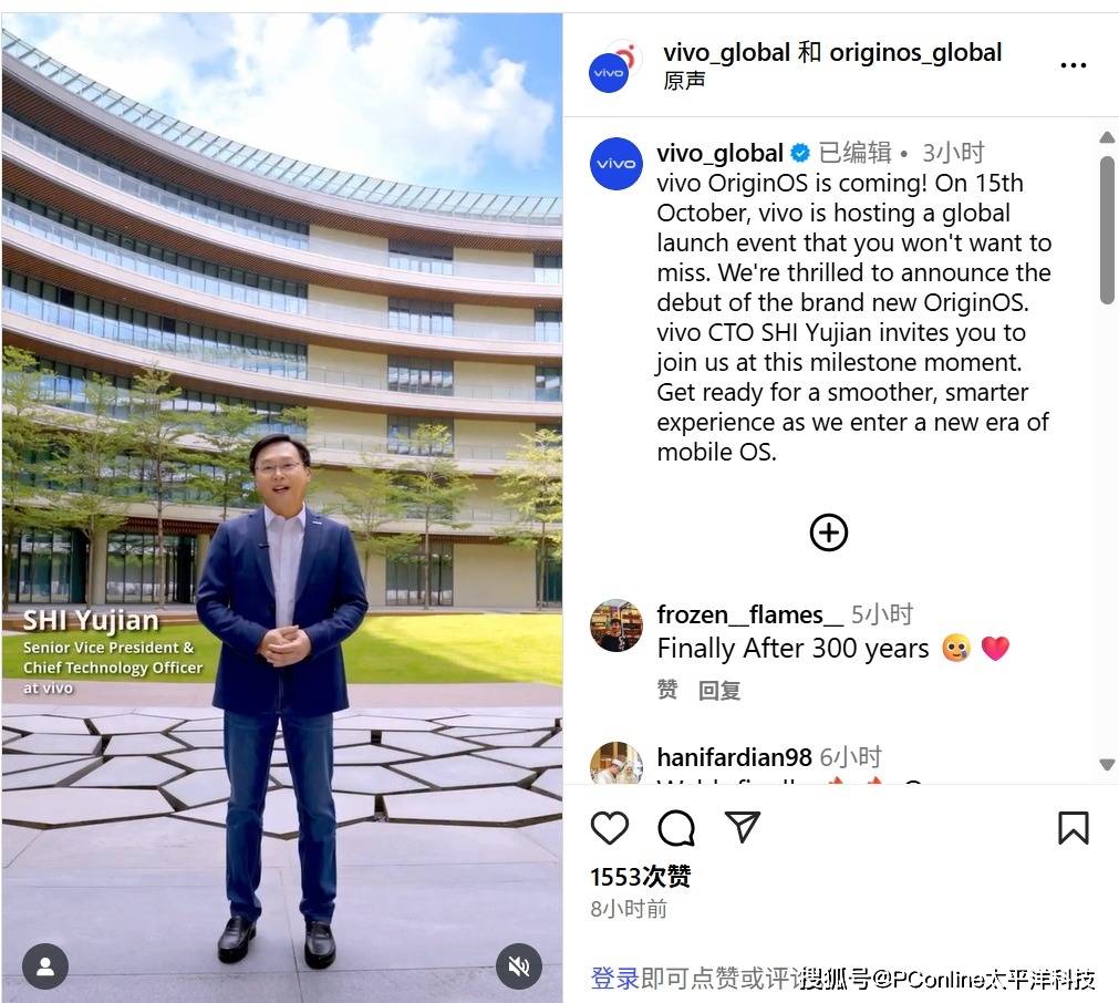 — vivo OriginOS全球发布会定档10月15日!共同见证新时代 —