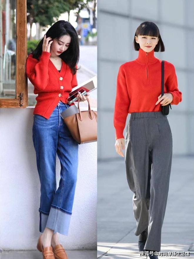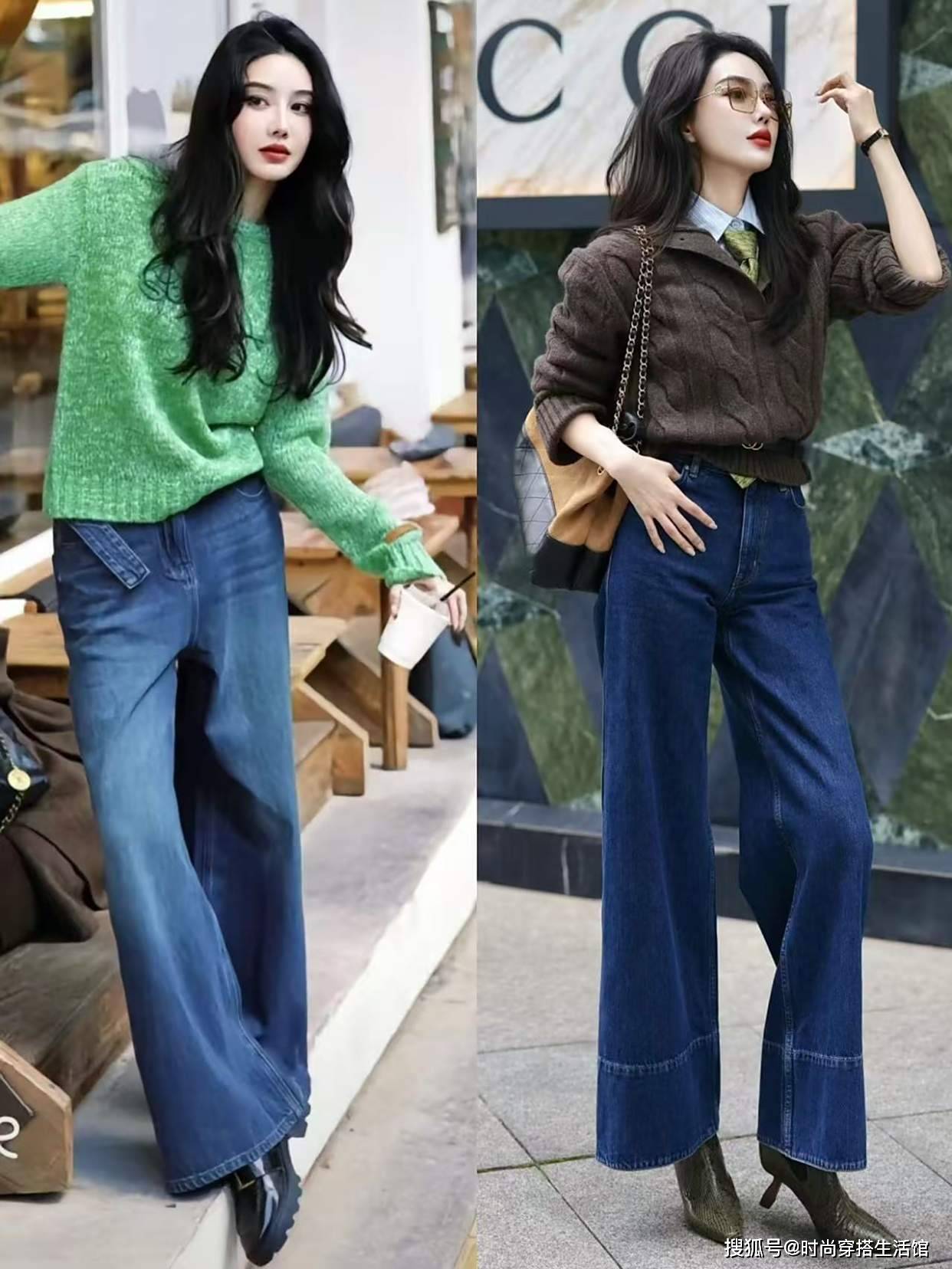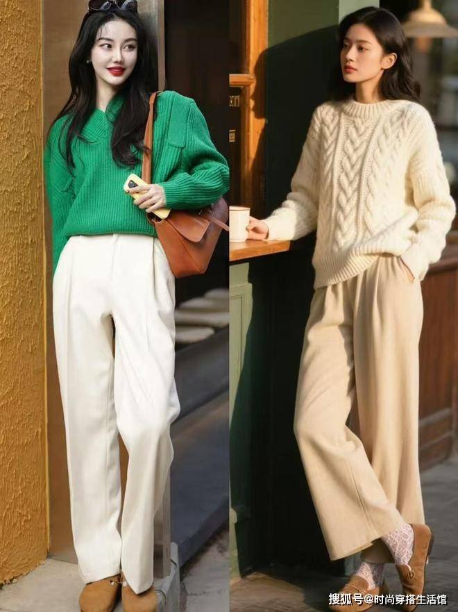 — 天气转凉才发现:满大街都在穿“毛衣+阔腿裤”,洋气又高级,美 —