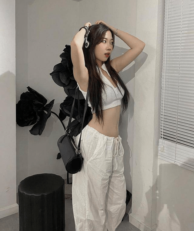 — 活力四射!白色紧身背心与松身休闲裤的时尚搭配 —