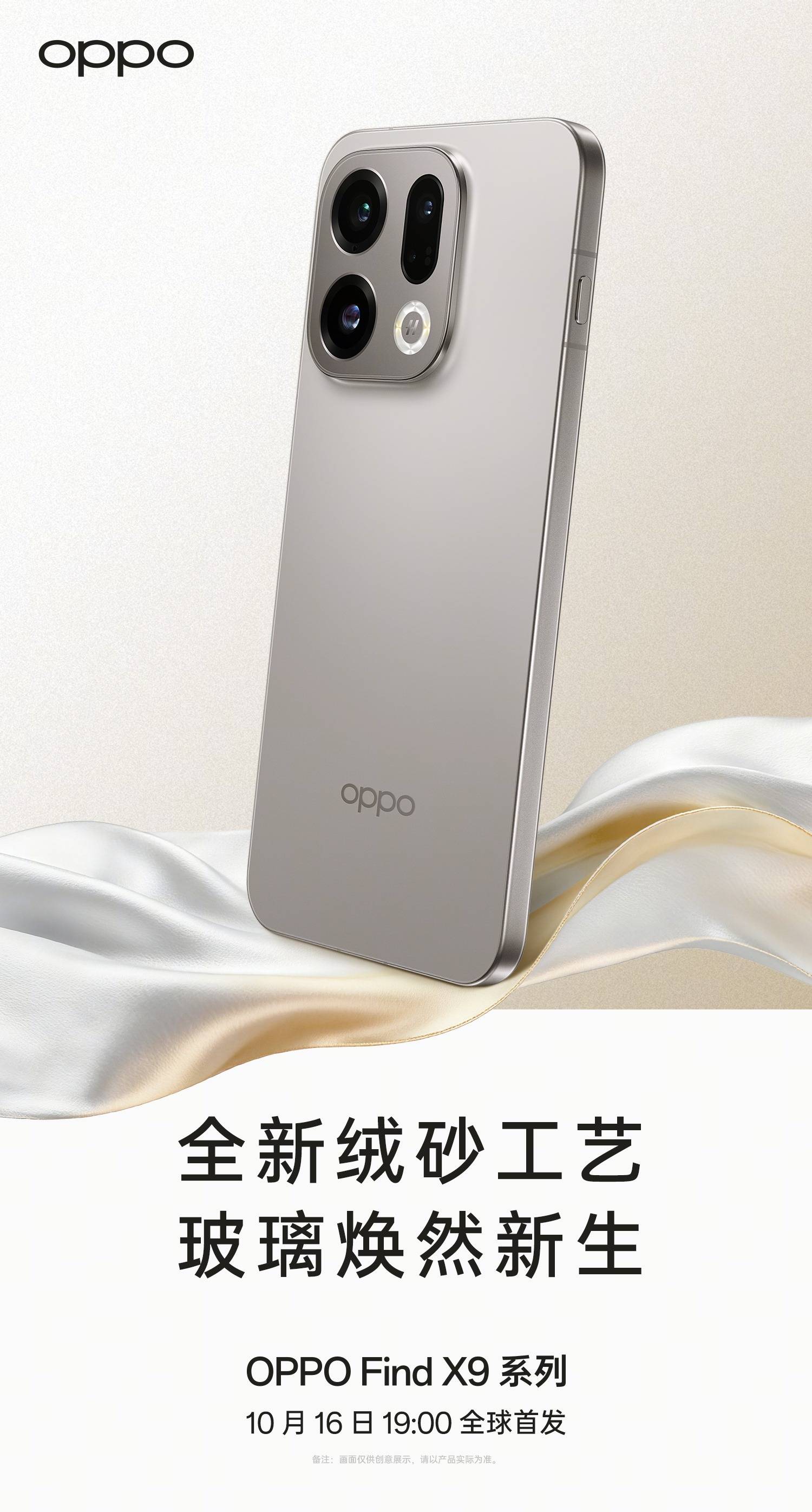 - OPPO Find X9系列外观正式亮相!绒砂工艺+全新四色