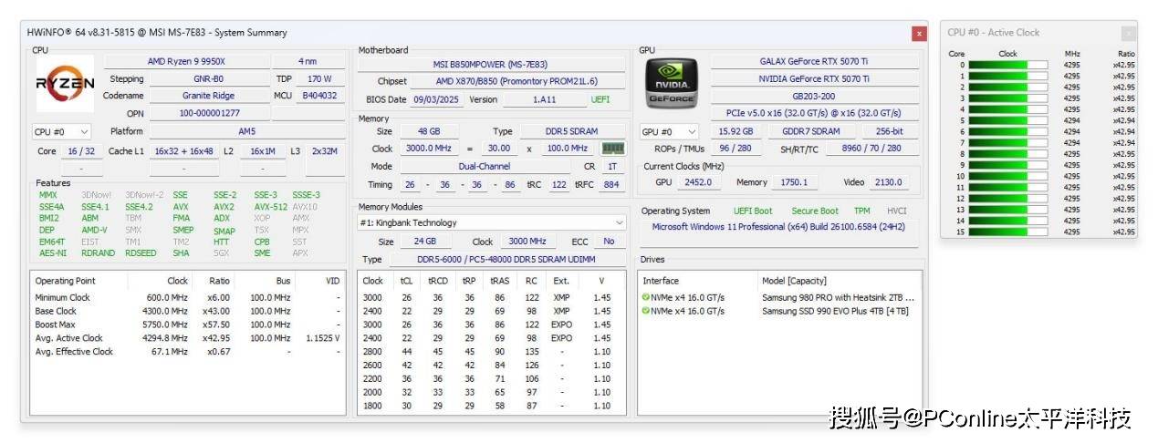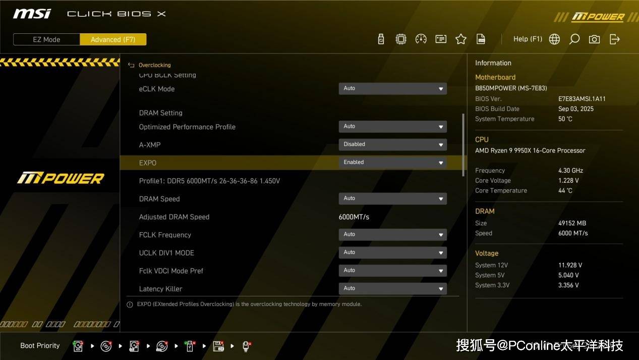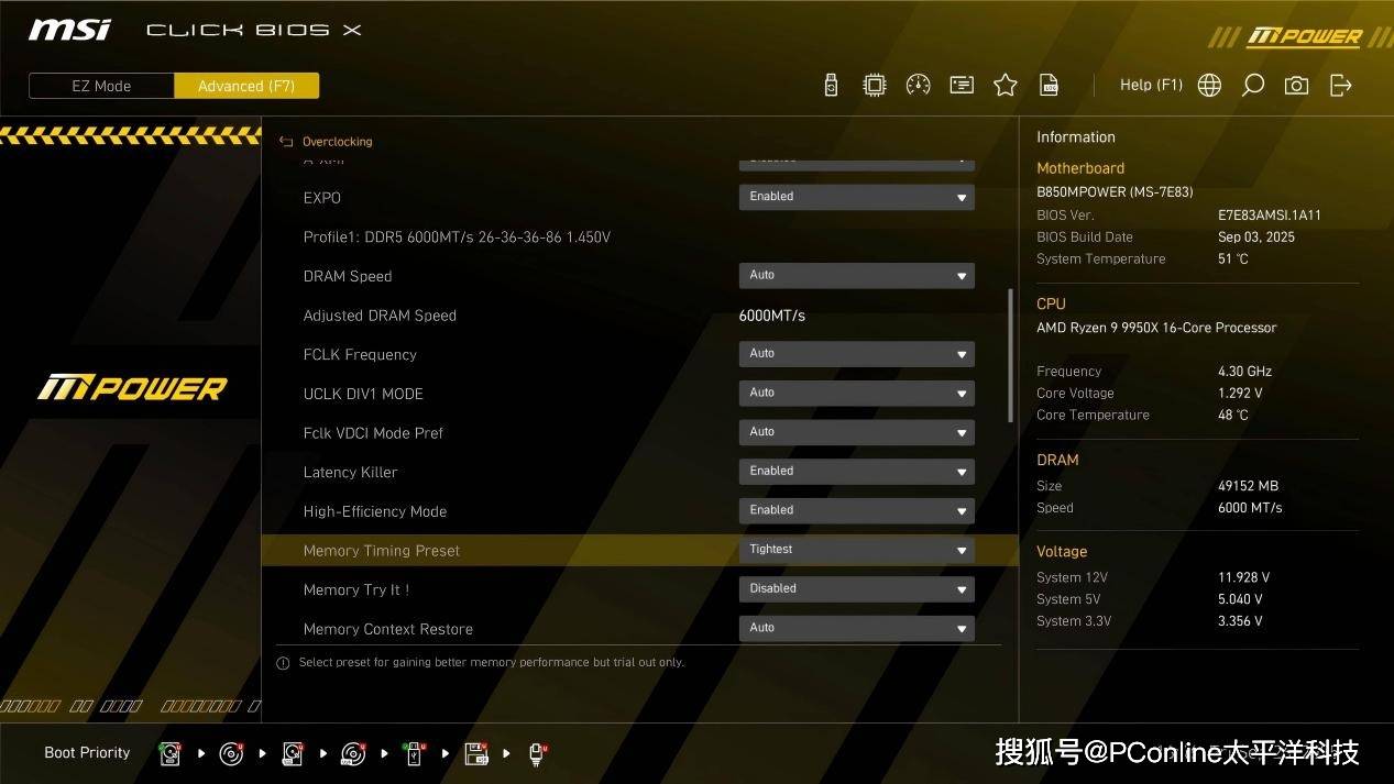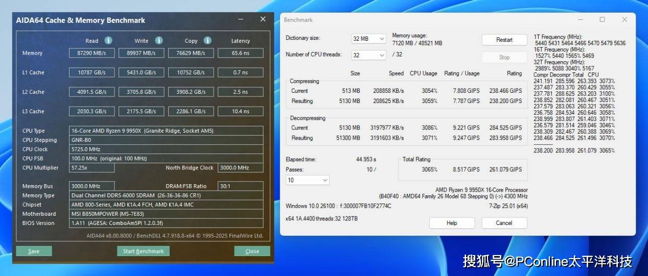 左侧为开启AMD EXPO内存超频模式,右侧为关闭状态下的内存性能