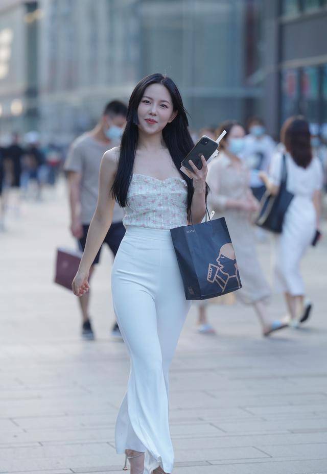 — 用印花抹胸搭配白色高腰阔腿裤,展现时尚、大方、优雅、知性美 —