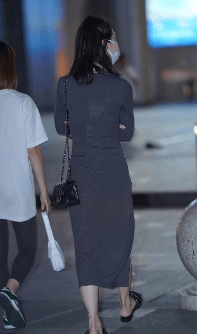— 美女穿灰色吊带裙,清凉舒适,凸显纤细身材与韵味十足 —
