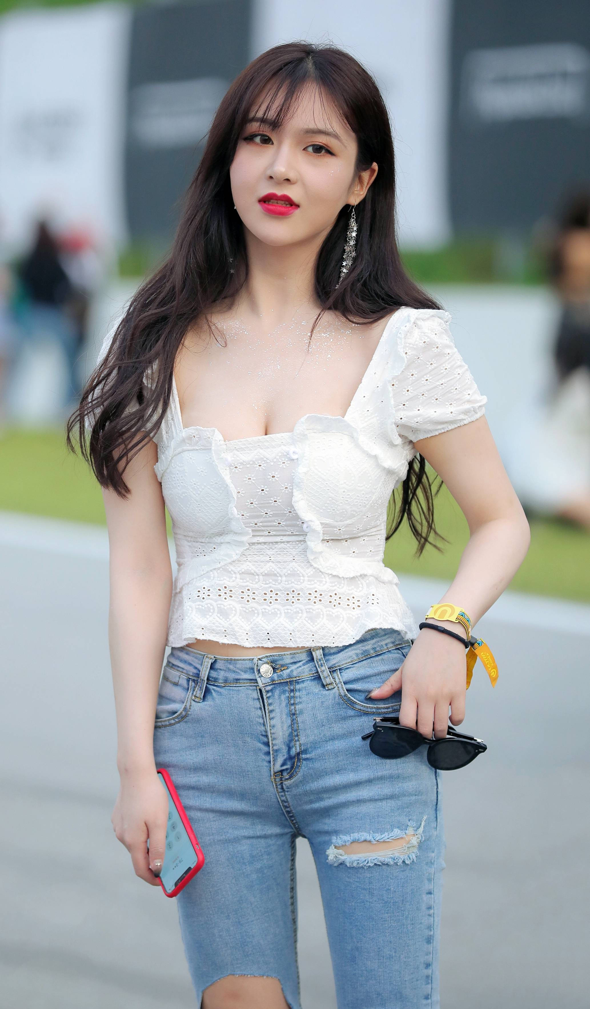 — 黄色长袖搭配白色喇叭裤,衬托的身材更加好看,青春时尚潮流 —
