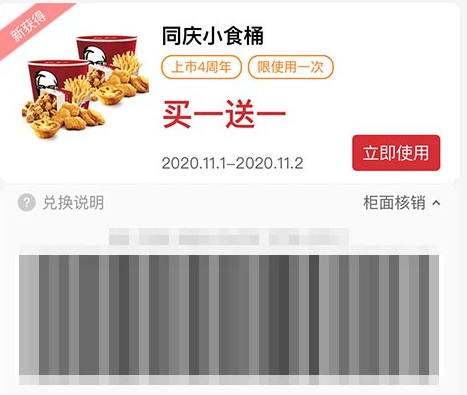 同庆小食桶 2020年11月凭肯德基优惠券买一送一