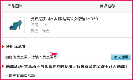 在丁丁打折网领取淘鞋网优惠券码后,通过本站链接到淘鞋网购物进行下单,下单进行到结算页面时,在结算页面的左下角输入您在丁丁打折网领取的淘鞋网优惠券码即可获得立减优惠。