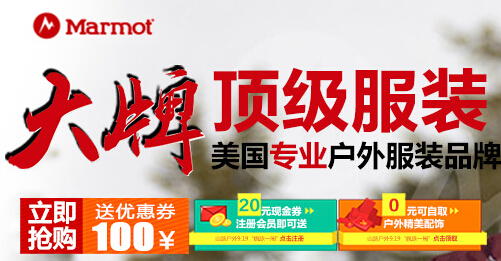 丁丁打折网(www.dddazhe.cn)发布的山脉户外优惠券,山脉户外商城100元无限制优惠券限marmot品牌使用.使用页面:http://www.shanmai.cn/marmot