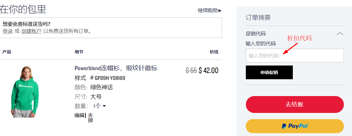 Champion优惠码是丁丁打折网发布的优惠促销信息,请先注册会员,从丁丁打折网领取Champion优惠码,并由此进入Champion官网,选购好商品后,输入优惠码即可抵用相应金额。