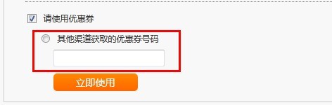 4.在提示填入优惠券号码的框内,粘贴优惠券号码。