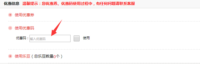 4.在提示填入优惠券号码的框内,粘贴优惠券号码。