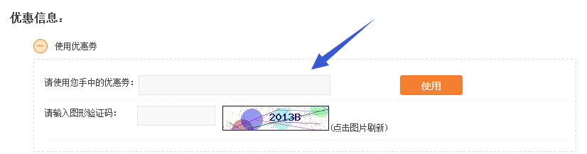 4.在提示填入优惠券号码的框内,粘贴优惠券号码。
